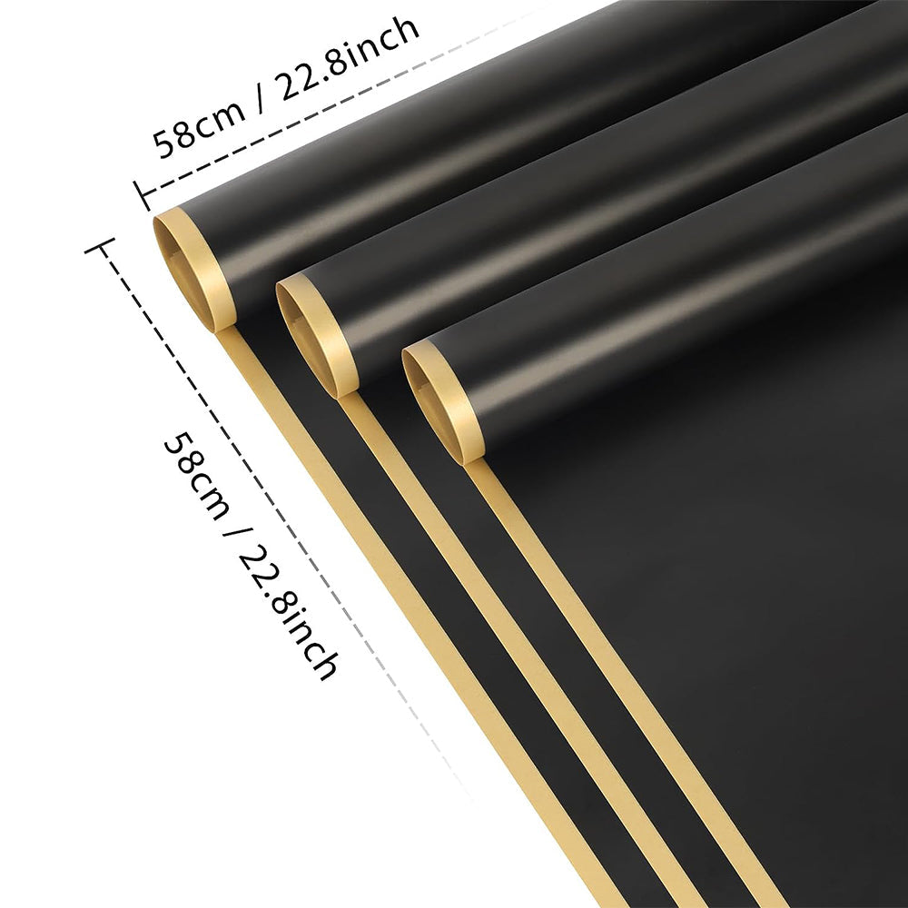 Set of 20 Sheets Flower Wrapping Paper Waterproof Floral Bouquet Packaging Paper for Wedding Birthday DIY Black Gold Edge