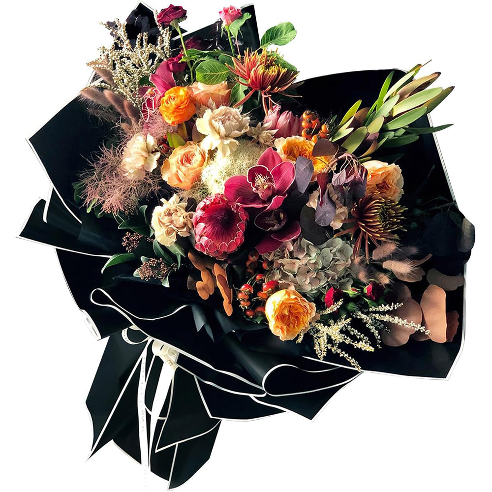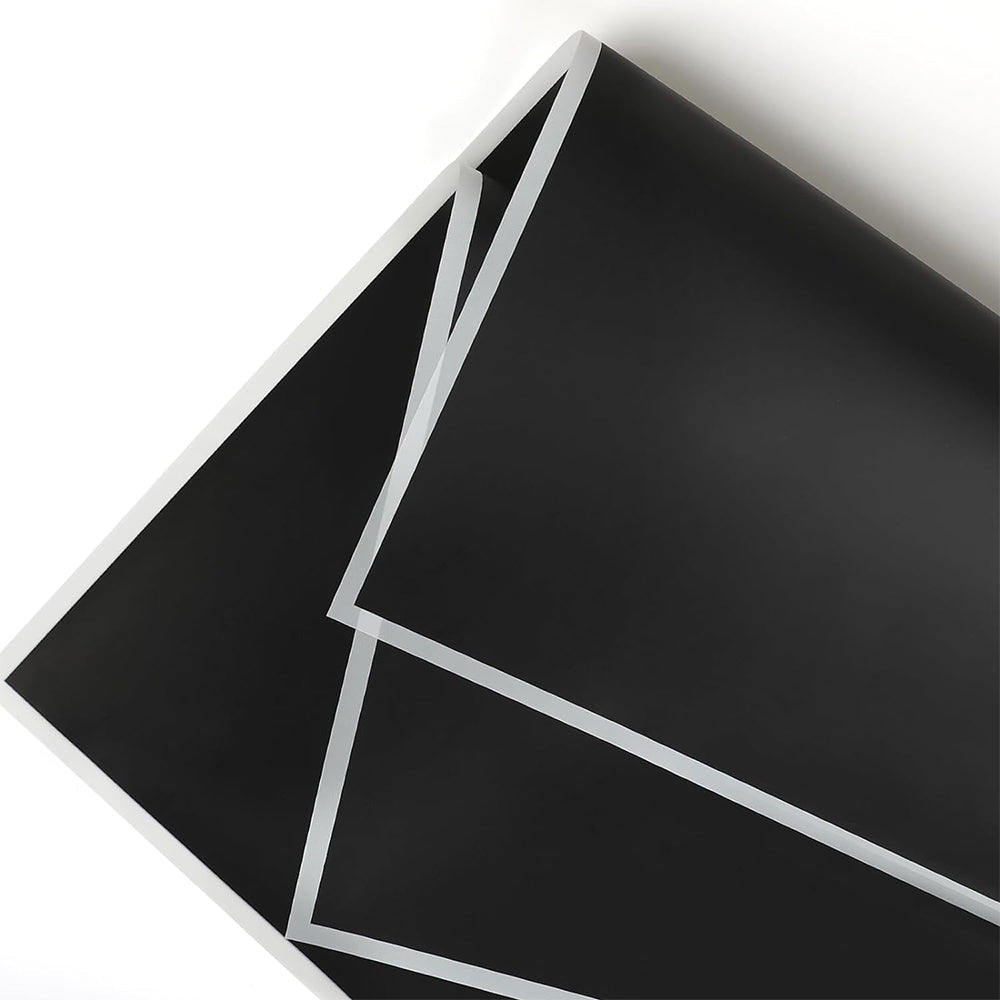 Set of 20 Sheets Flower Wrapping Paper Waterproof Floral Bouquet Packaging Paper for Wedding Birthday DIY Black White Edge