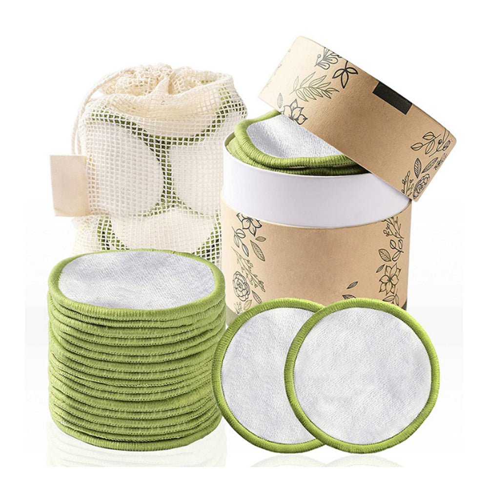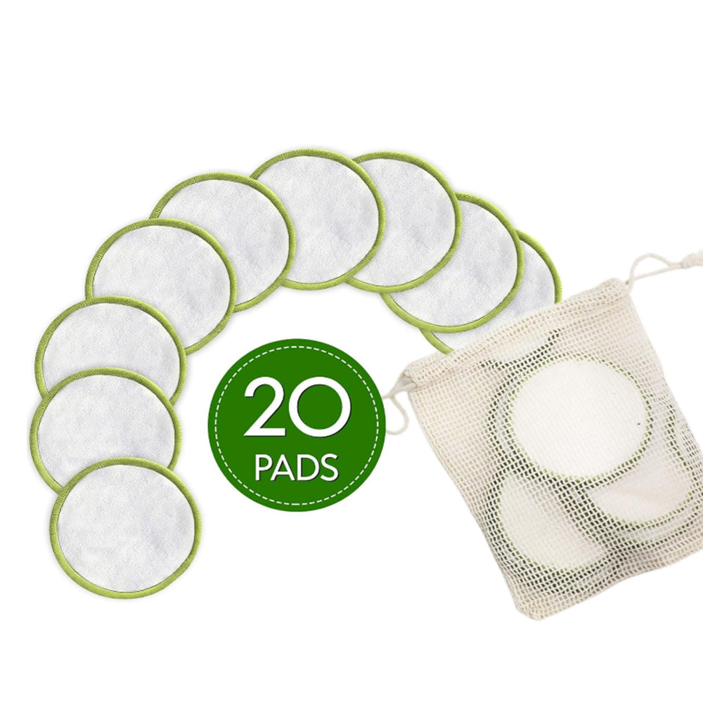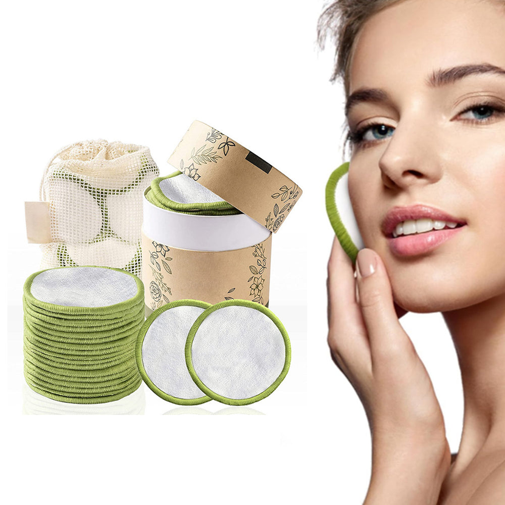 Set of 20Pcs Reusable Makeup Remover Pads Eco-Friendly Bamboo Cotton Pads Green