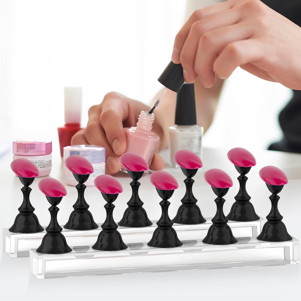 - This package contains 2 sets of nail display stands in classic colors, each set contains 5 piece of nail practice holders and 1 piece of acrylic practice stand base in total, enough to meet your nail training needs.