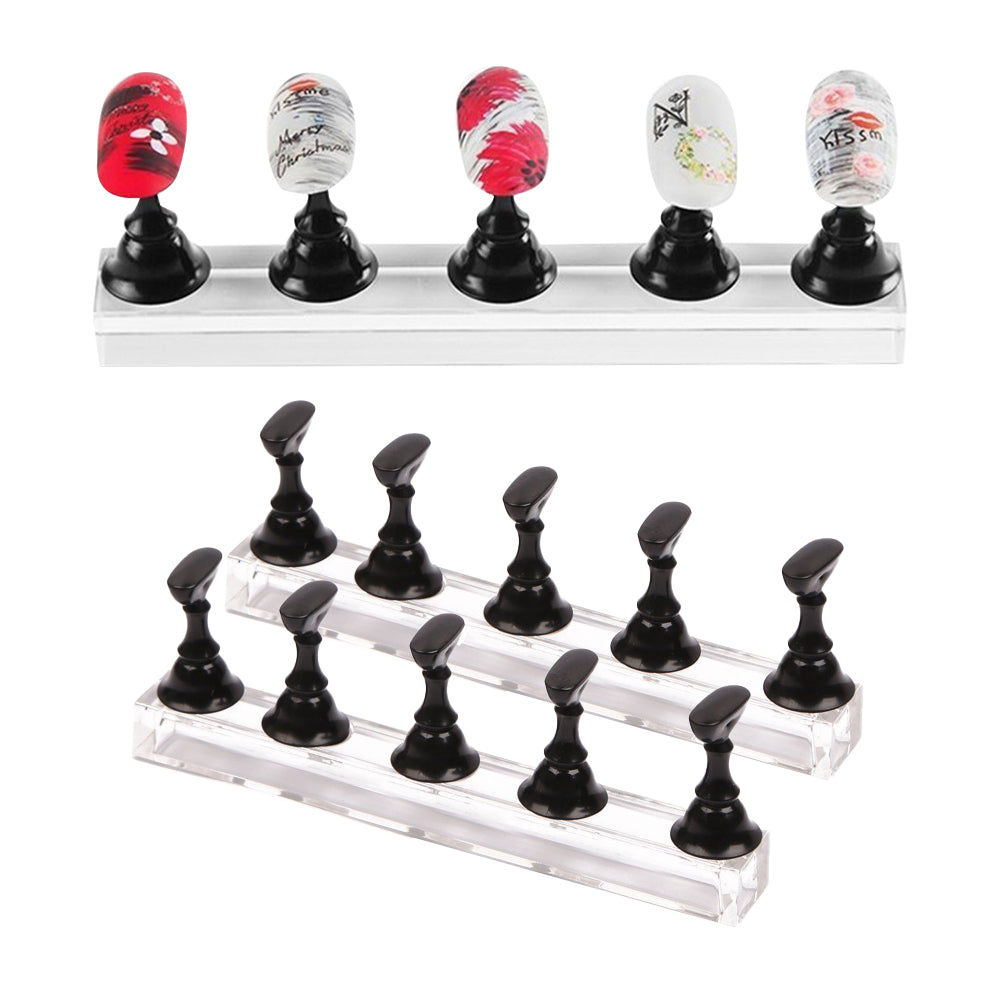 Set of 2Pcs Acrylic DIY Nail Art Practice Display Stand Magnetic Fake Nails Holder for Manicure Practices Black
