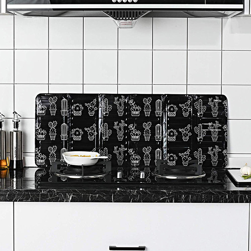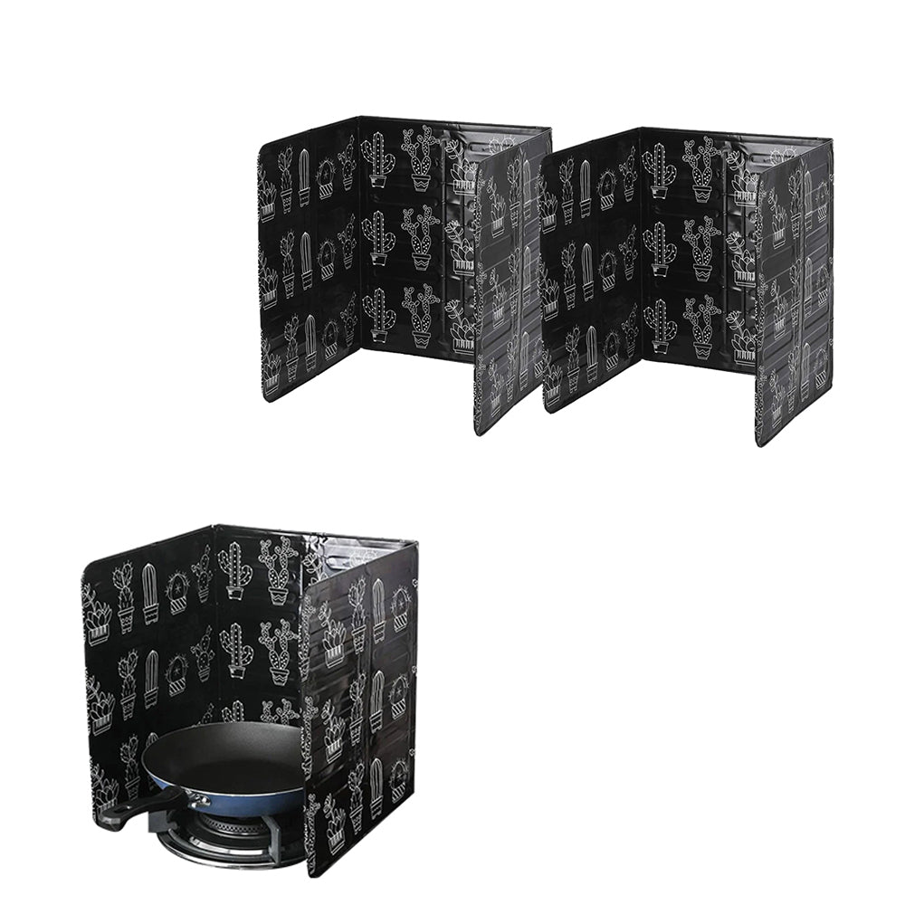 Set of 2Pcs Foldable Oil Splatter Screens Aluminium Foil Gas Stove Splash Proof Baffle Home Kitchen Cooking Gadgets Black
