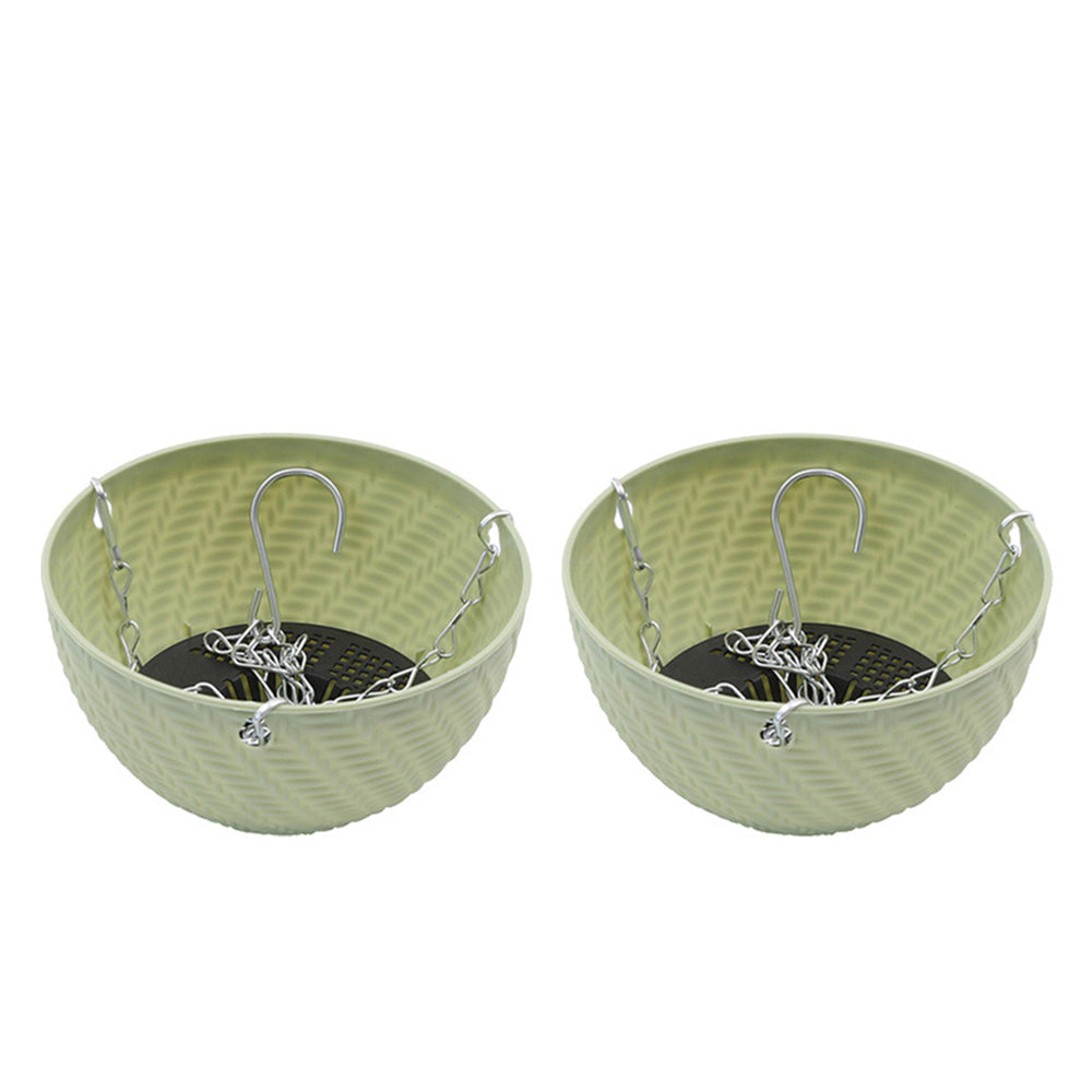 Set of 2Pcs Hanging Flower Pot Basket Garden Plant Hangers with Drainage Holes and Chain Green