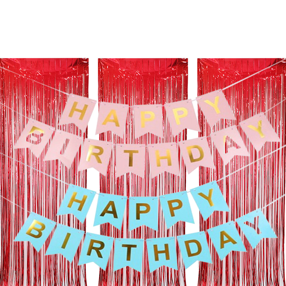 Set of 3Pcs 2M Fringe Curtain Backdrop Curtain Photo Booth Props Streamers Party Decorations Red