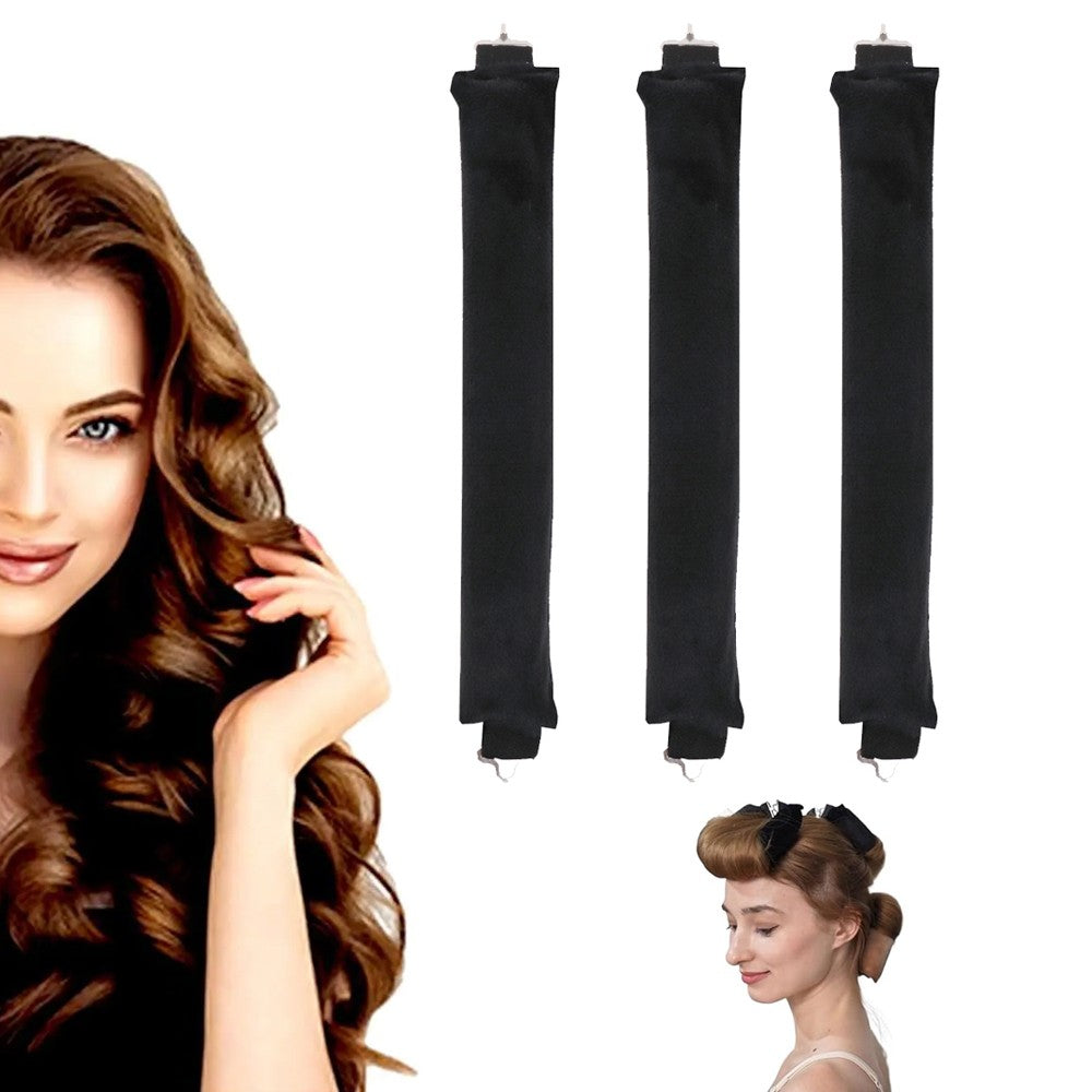 Set of 3Pcs Heatless Hair Curler Overnight Curls Rods with Hook Long BlackHair Styling Tools