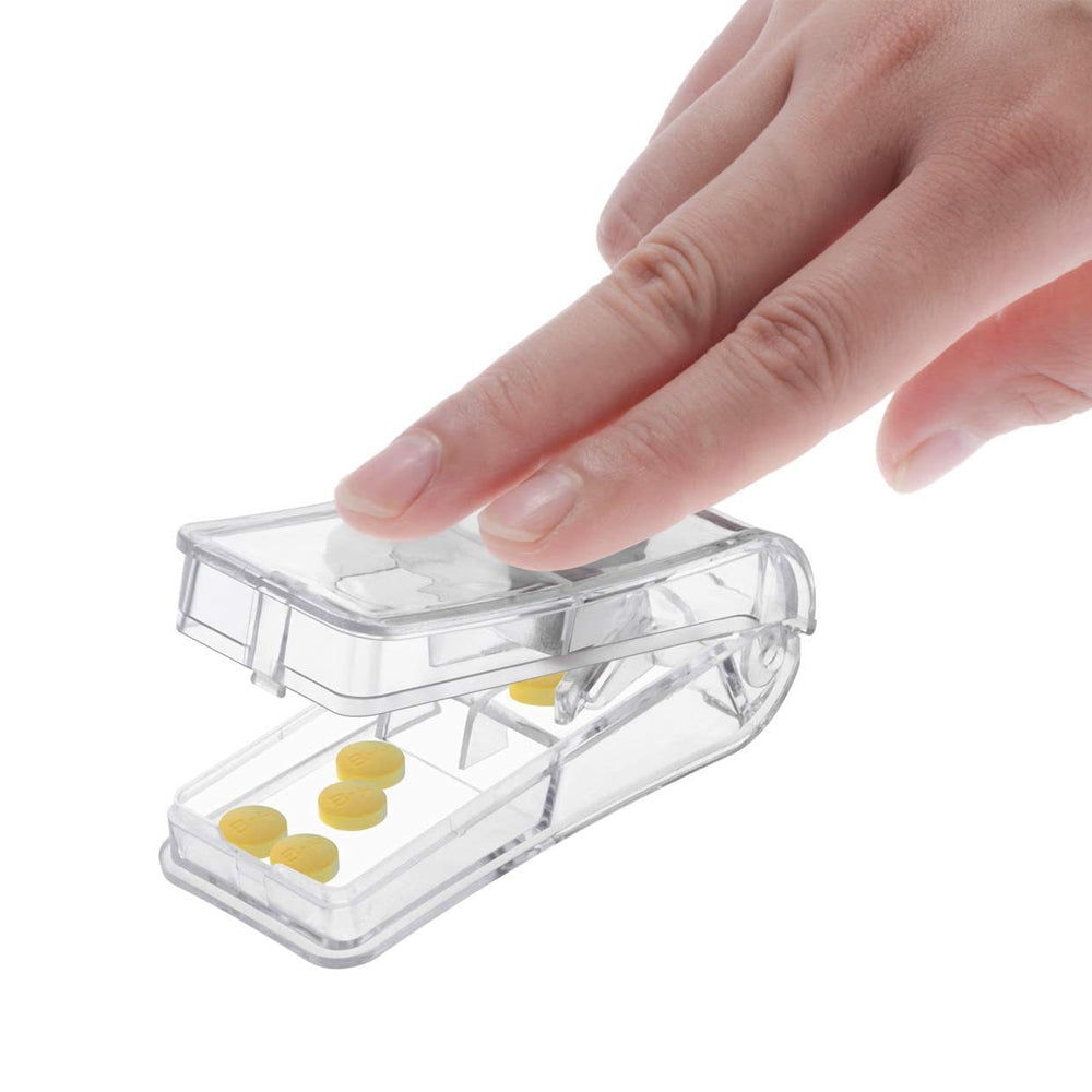 This pill cutter box can easily divide large or small pills, caplets, vitamins or supplements.