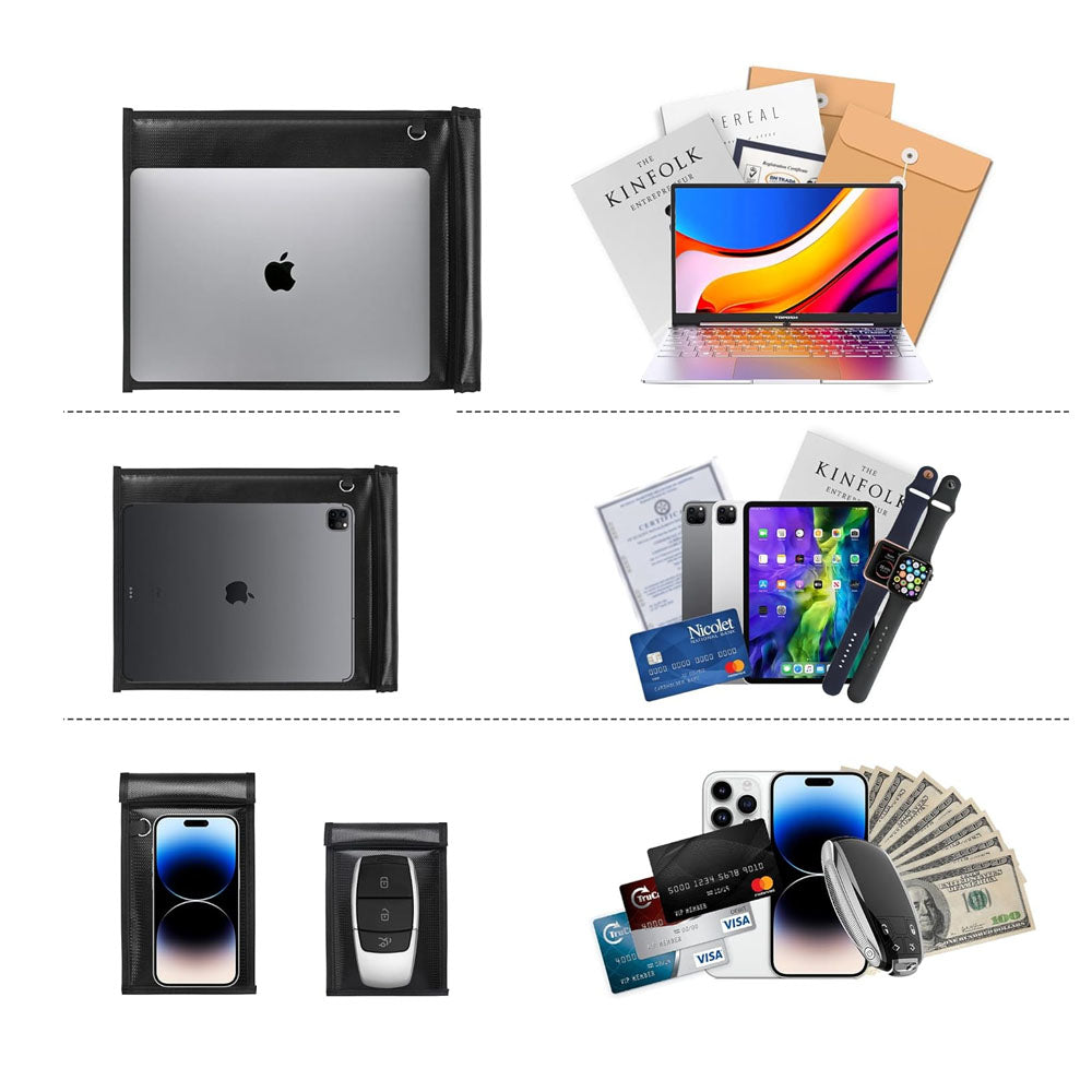 Set of 4 Pcs RFID Blocking Faraday Bags Fireproof Water Resistant Pouch for Laptops Tablets Car Keys