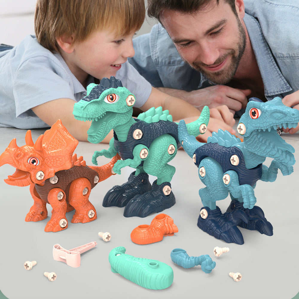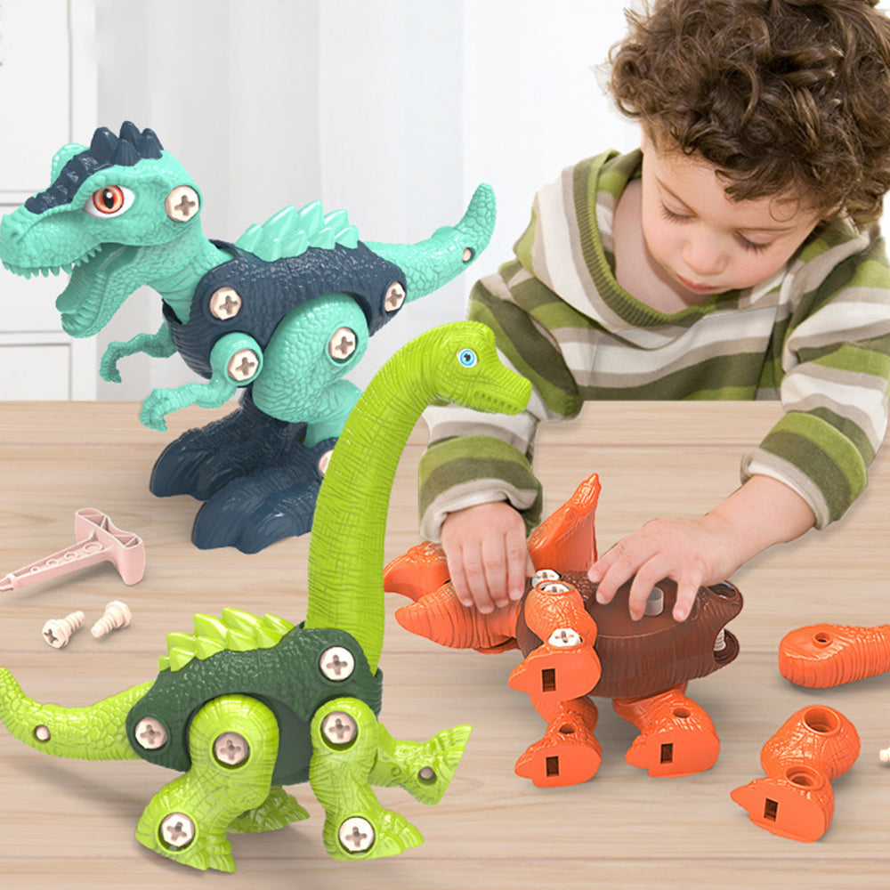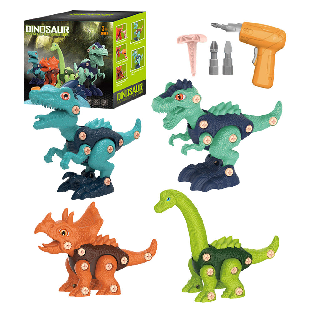 Set of 4 Pieces Take Apart Dinosaur Drill Toy DIY Assembled Dinosaur Kids Learning Construction Building Toys Gift