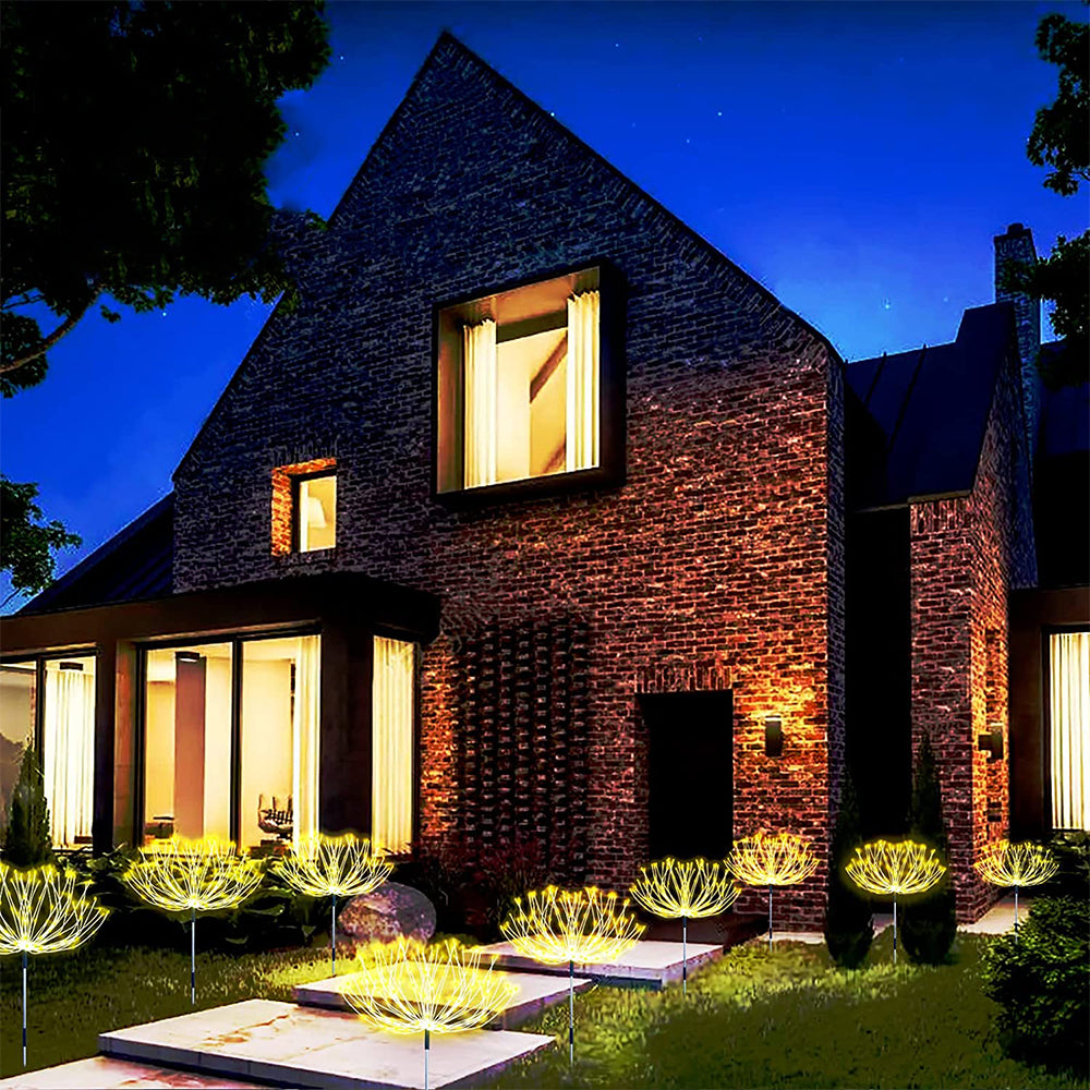 Unihoh solar garden fireworks lights are equipped with 1200 ultra-large capacity rechargeable battery, which is able to provide 12-16 hours of continuous lighting after 4-6 hours.