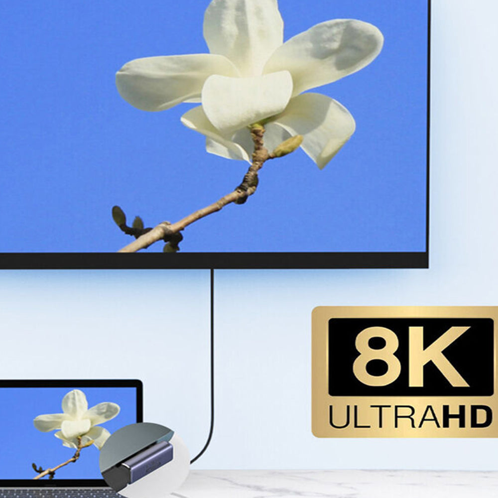 - Unlock the potential of up to 8K120kHz audio and video transmission(Please comfirm if the device and cable support 8K), allowing you to seamlessly charge, enjoy audio and video, and transfer data whether you're on the go, at home, or in the office.