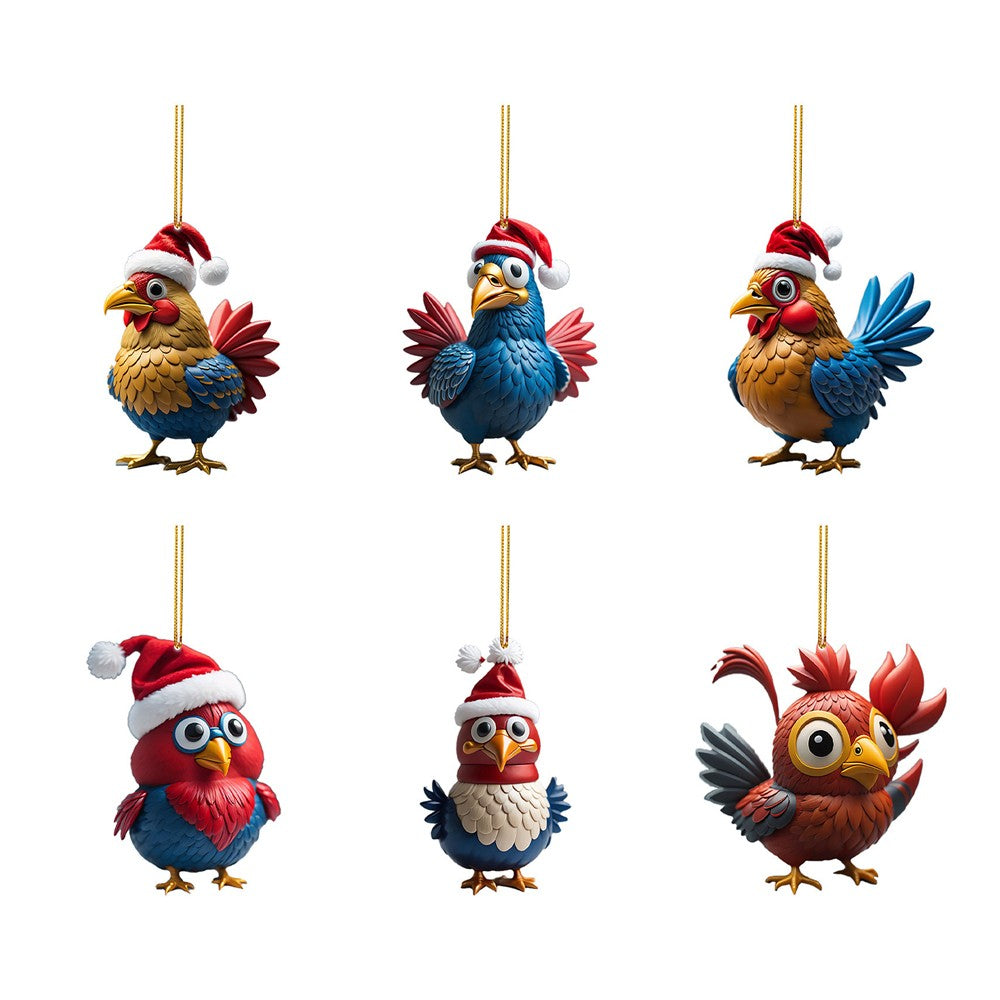 Set of 6Pcs Acrylic Chicken Pendant Car Hanging Christmas Ornament Decoration Style 1