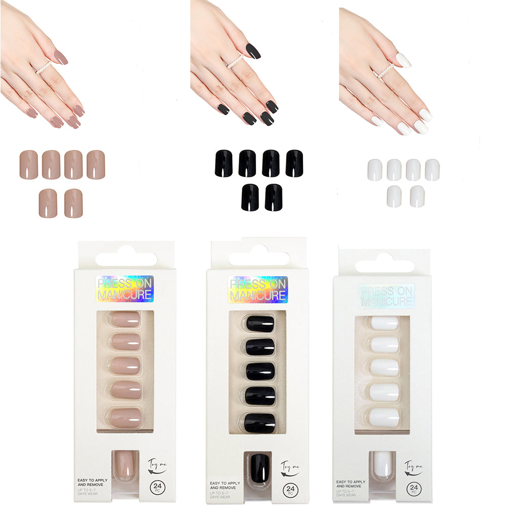 Set of 72Pcs Press On Nails Solid Color Self-Adhesive Fake Nails Style 1