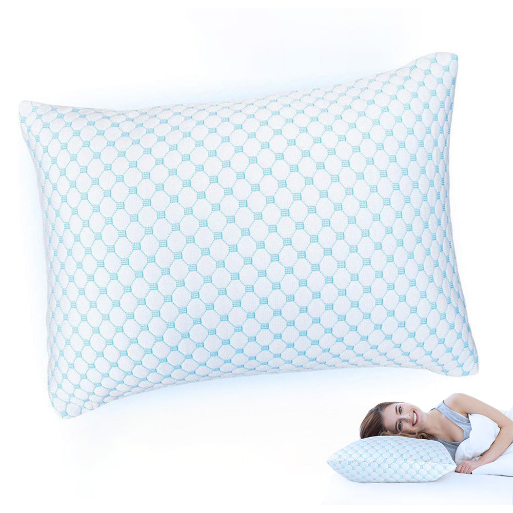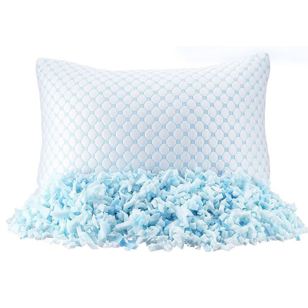 A shredded memory foam pillow featuring dual-cooling surfaces, designed to provide optimal support for a comfortable sleep.