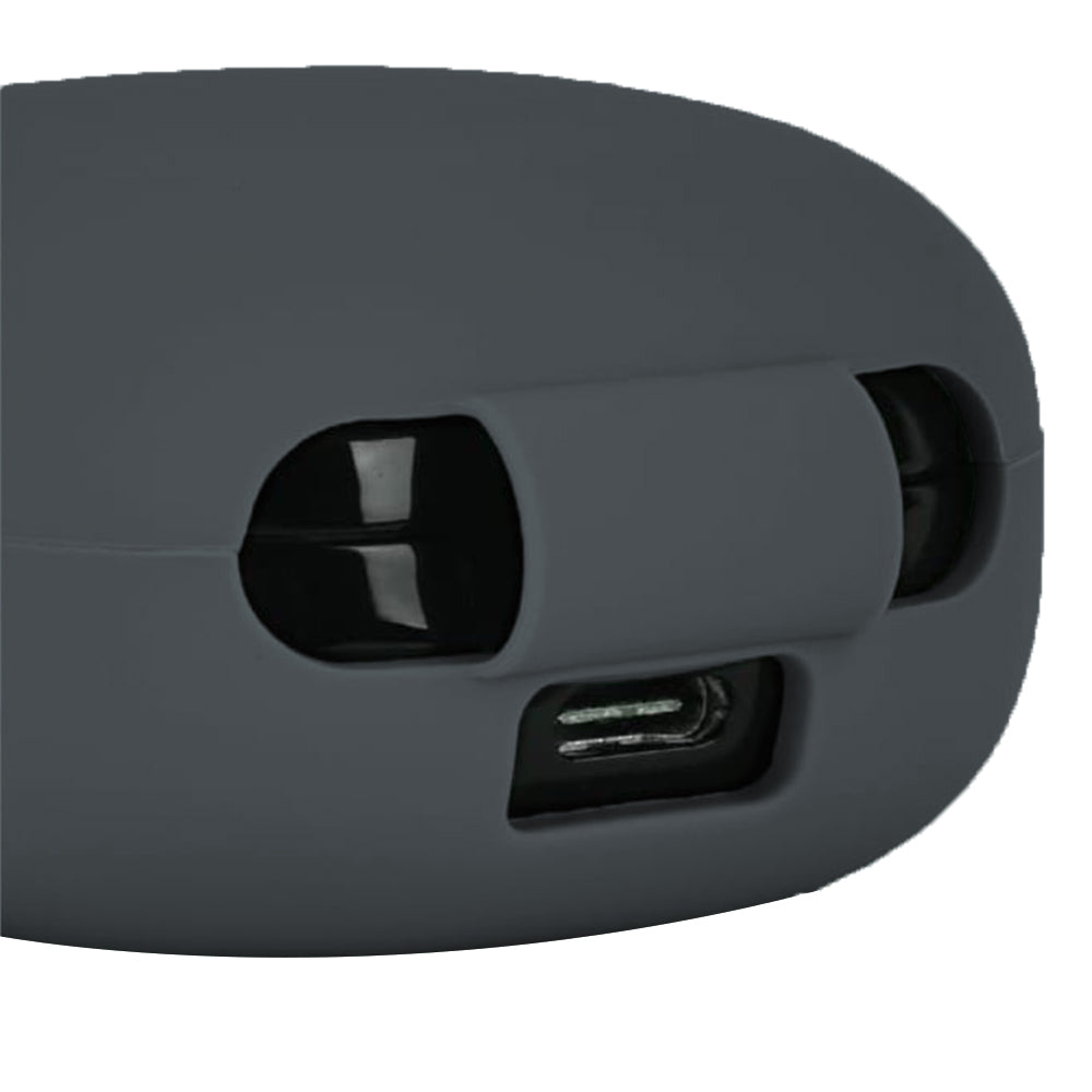 - The silicone case has a cutout in the bottom that allows you to charge the headset without removing the cover.