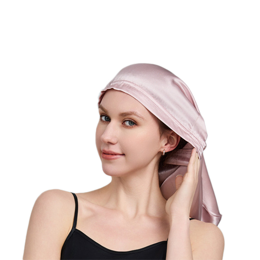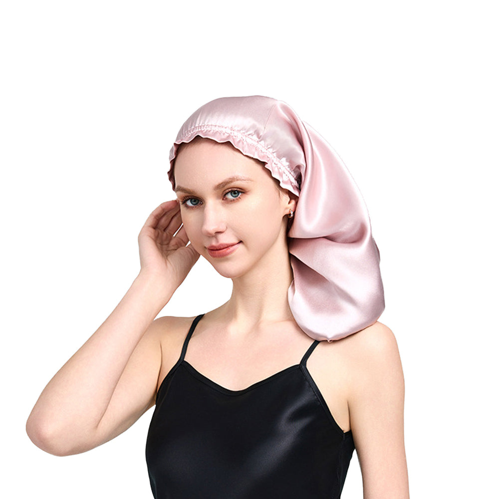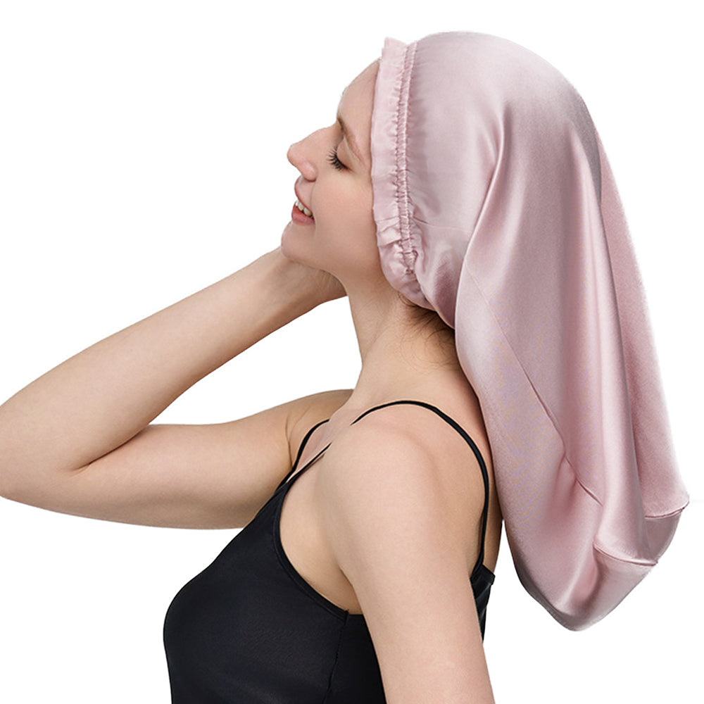 Silk Long Hair Bonnet for Sleeping Elastic Satin Sleep Cap for Women Pink