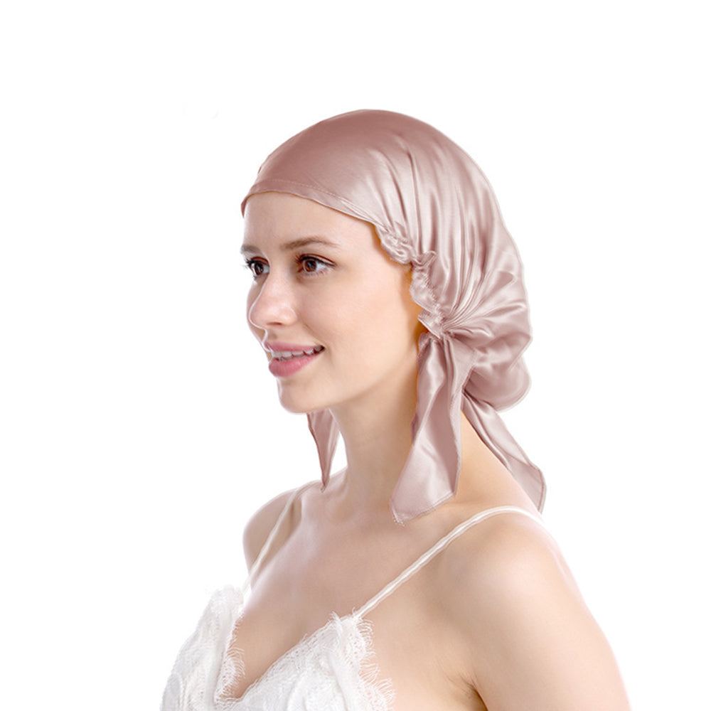 Silk Satin Hair Bonnet for Sleeping Hair Wrap Sleep Cap Turban with Elastic Band Pink
