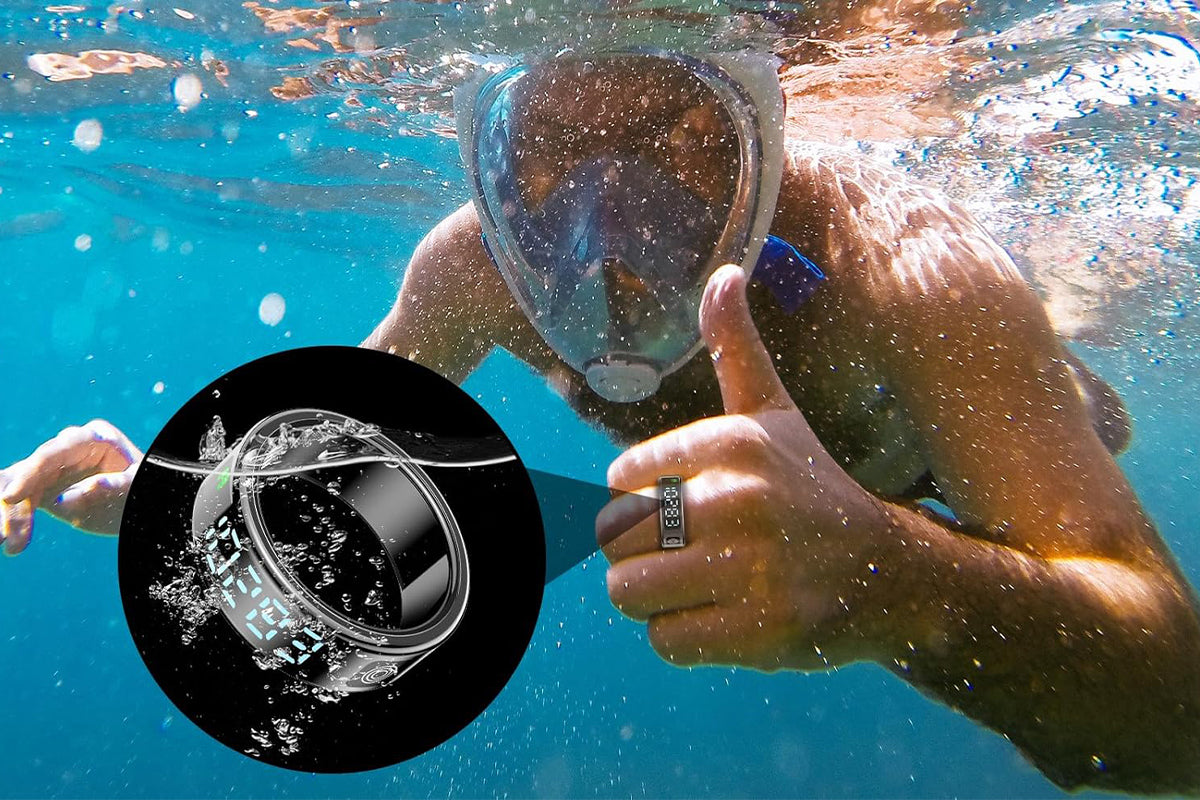 - Suitable for swimming and diving. No need to remove the ring while washing hands or showering. Track time and fitness data even underwater.