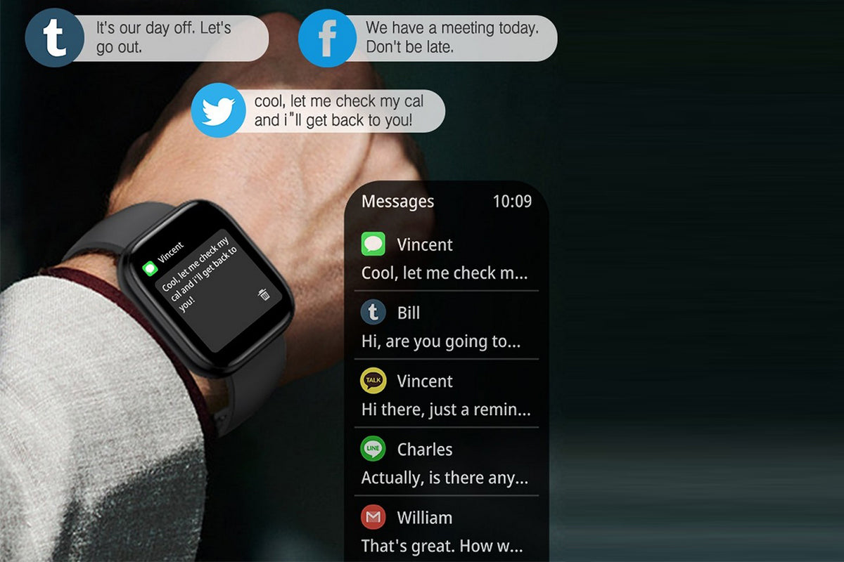 - Reminder function:Alarm reminder,Incoming call reminder,SMS reminder,WeChat reminder,QQ reminder,Taobao reminder,Alipay reminder,Facebook,Twitter,LinkedIn,whatsAPP,Line,Instagram,Kakaotalk,Skype,Snapchat,Gmail,Sedentary reminder,Drink water reminder,Physiological reminder,Other reminders