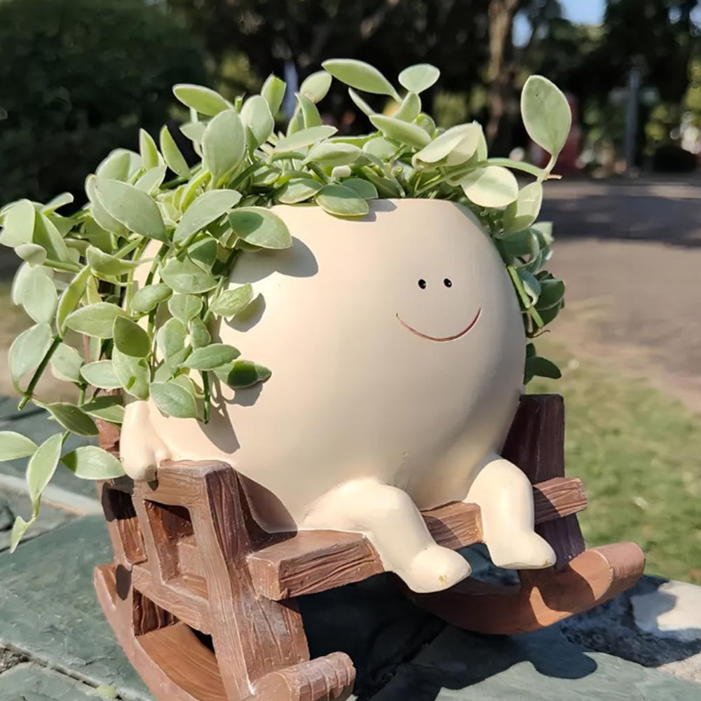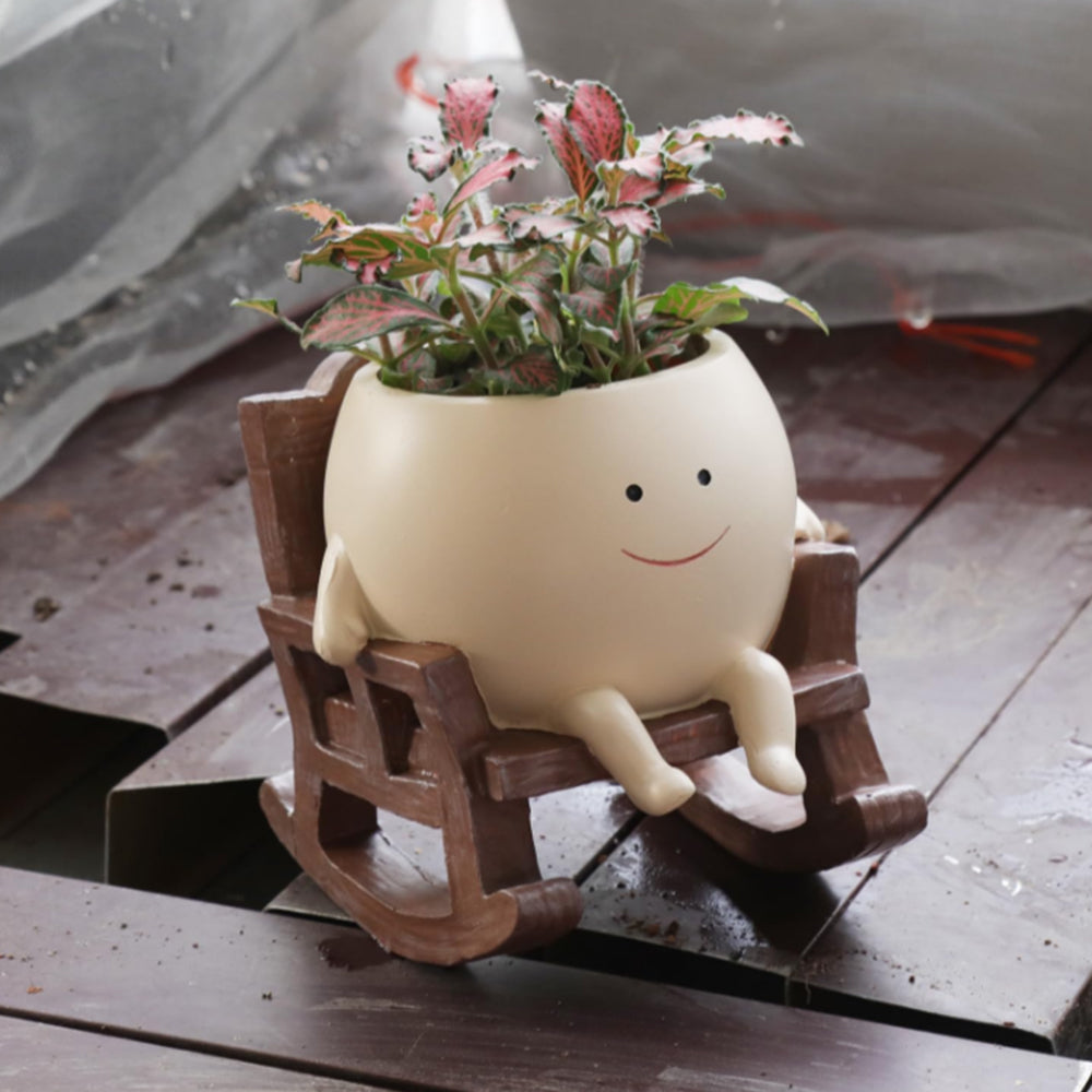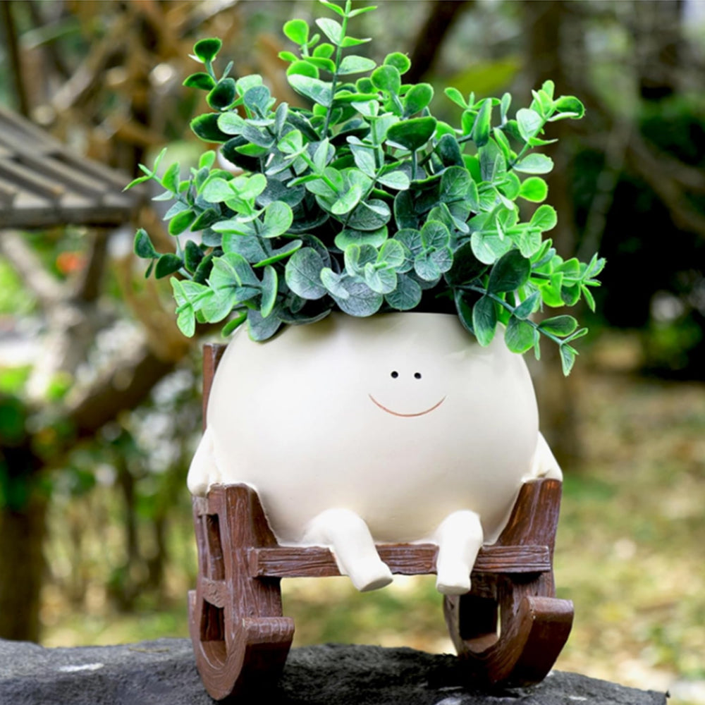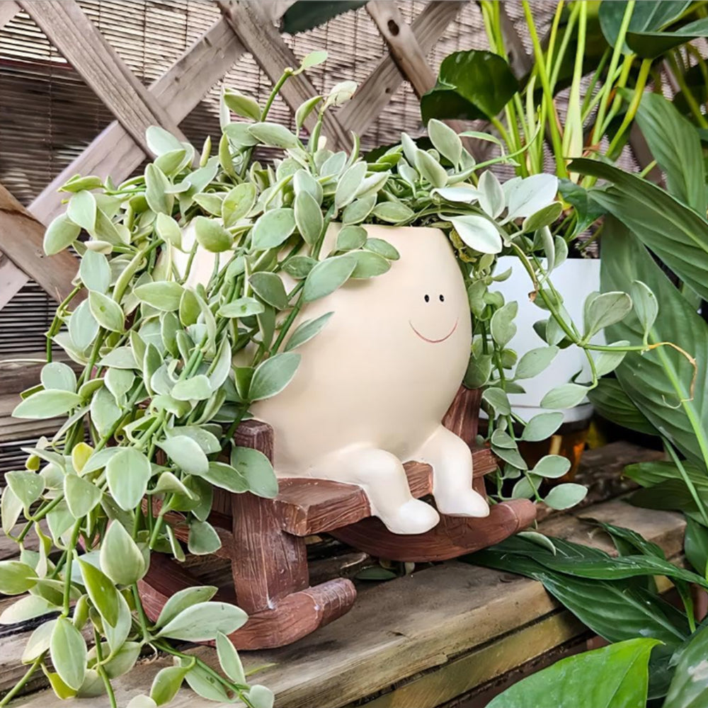 - Rocking chair face planter flower pot is made from resin, with a smiling pattern that can add much fun to your life, suitable for decorating your garden and home.