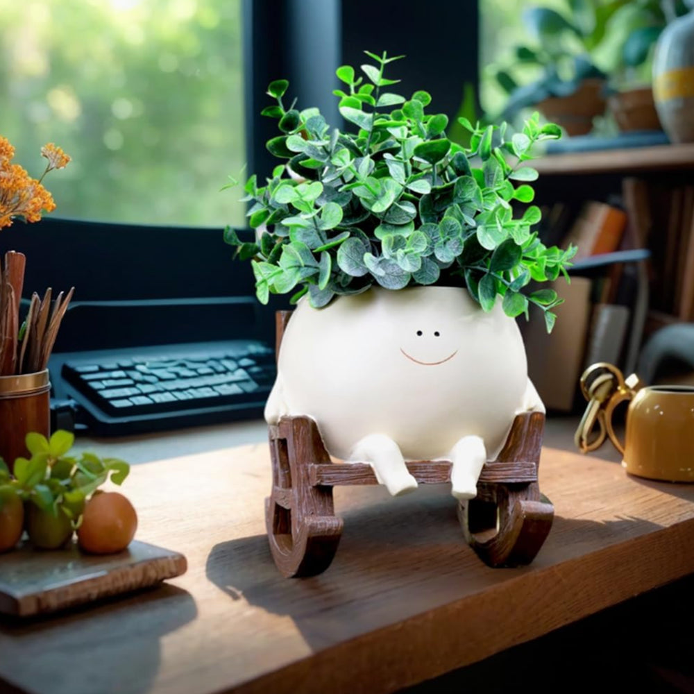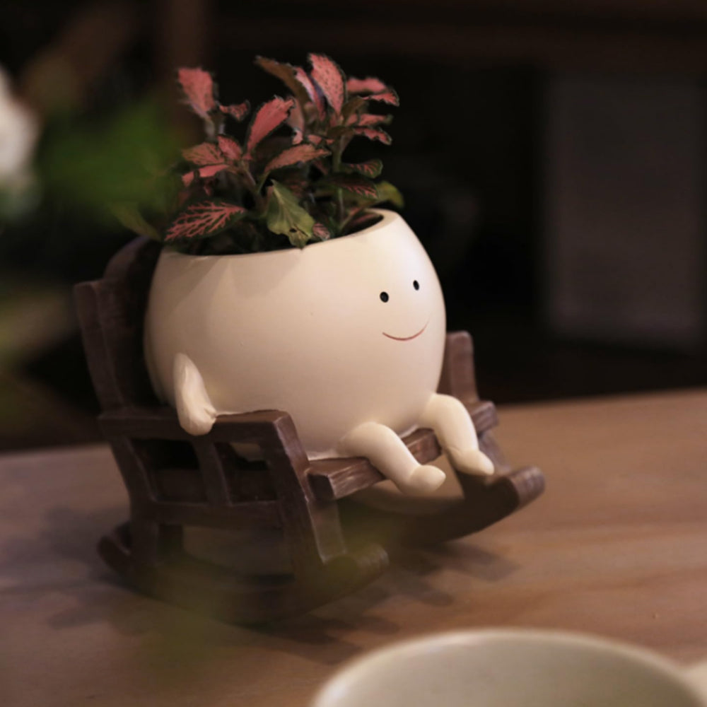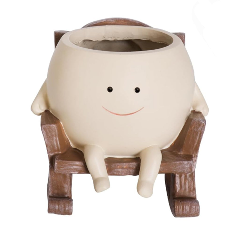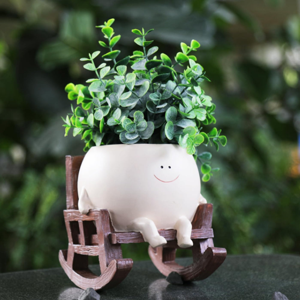- Rocking chair face planter flower pot is made from resin, with a smiling pattern that can add much fun to your life, suitable for decorating your garden and home.