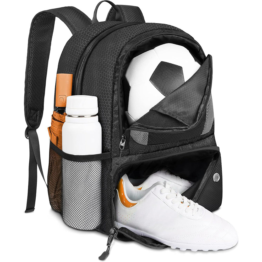 - Dedicated Compartments: The top ball holder fits a size 5 soccer, basketball, or volleyball. The separate bottom shoe compartment features ventilation holes to keep your shoes dry and fresh.