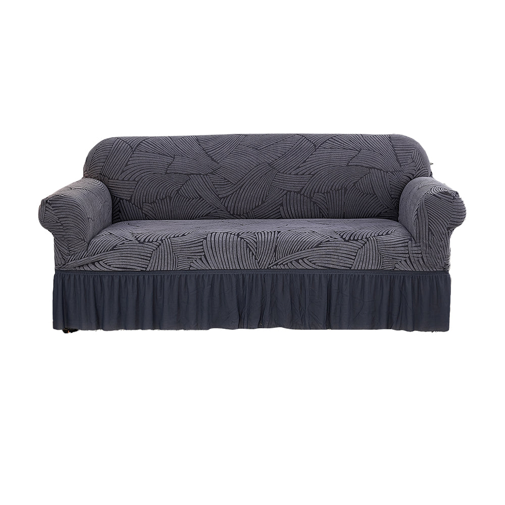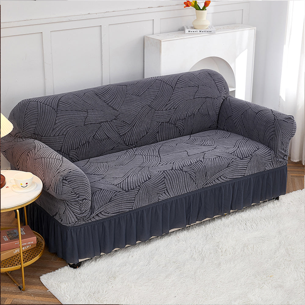 Soft Couch Cover with Skirt Ruffled Stretch Sofa Cover -Grey