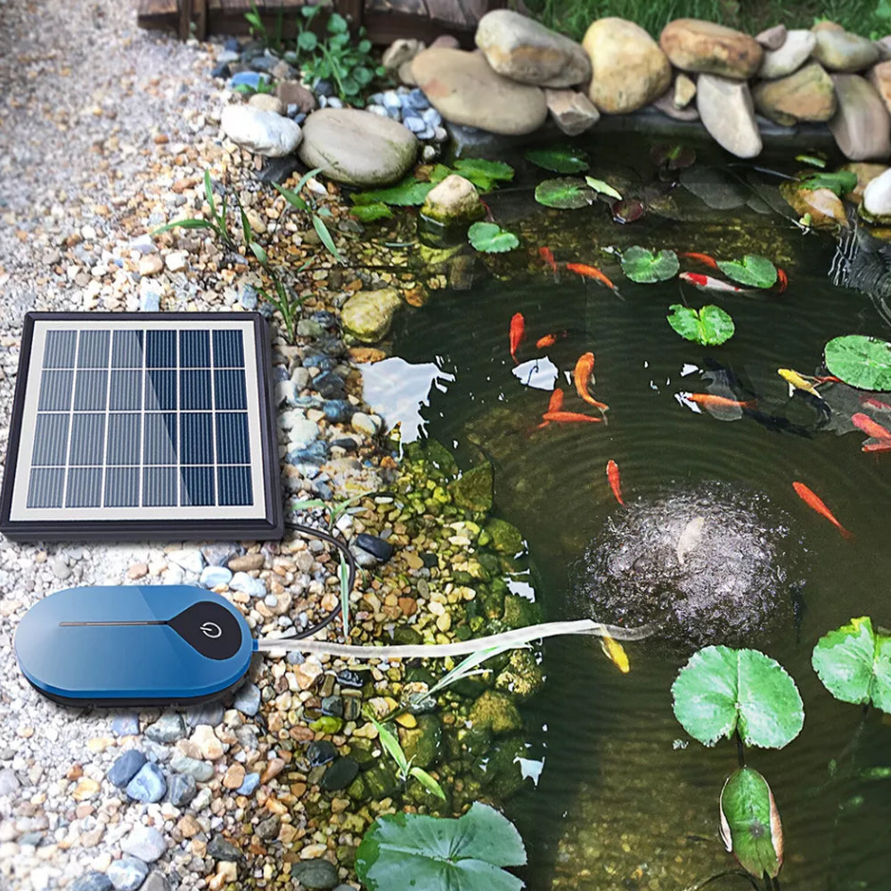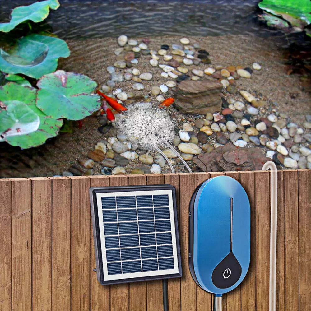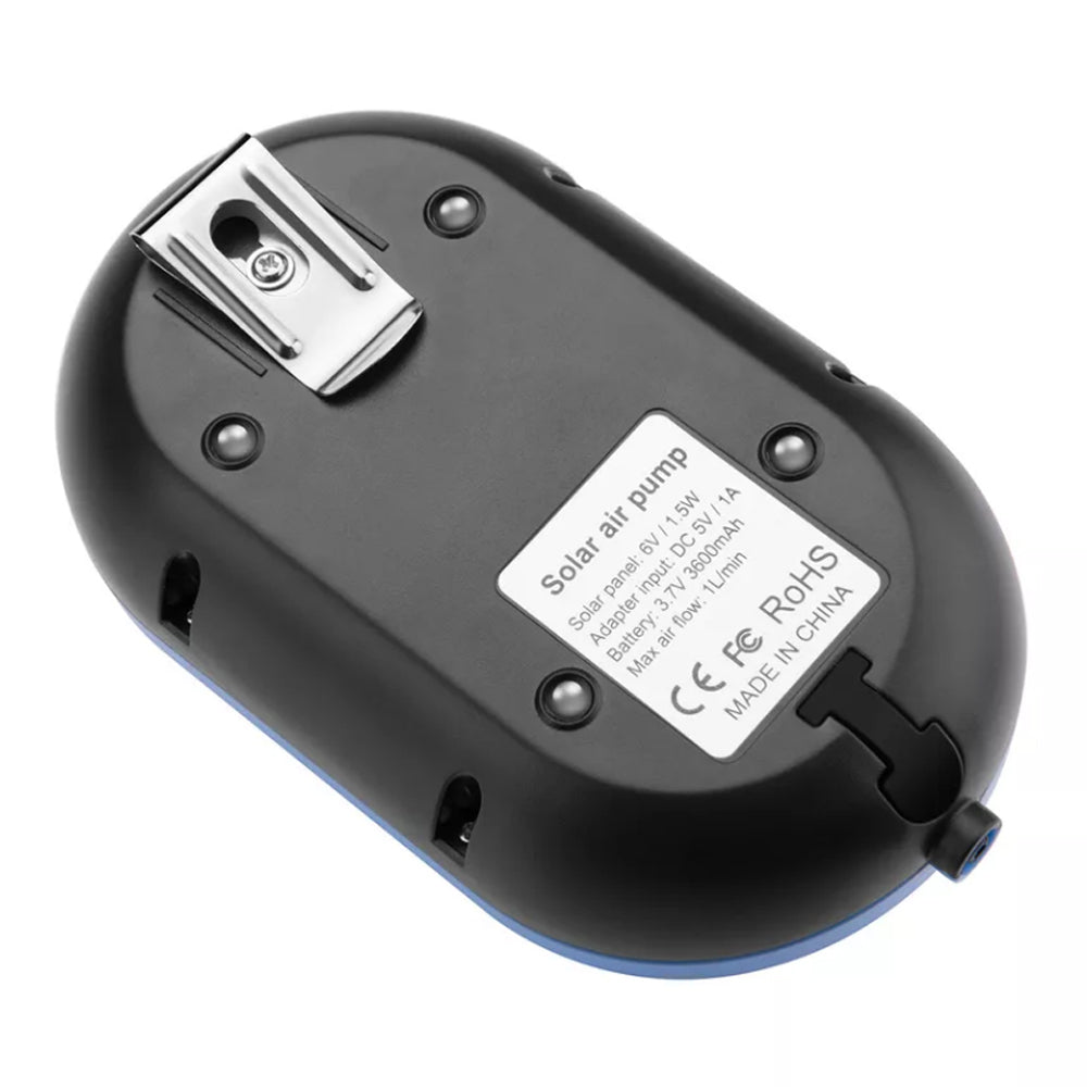 This oxygen pump supports solar energy and USB charging and can work continuously for more than 24 hours, perfect for bird baths, small ponds, water circulation for oxygen, etc.