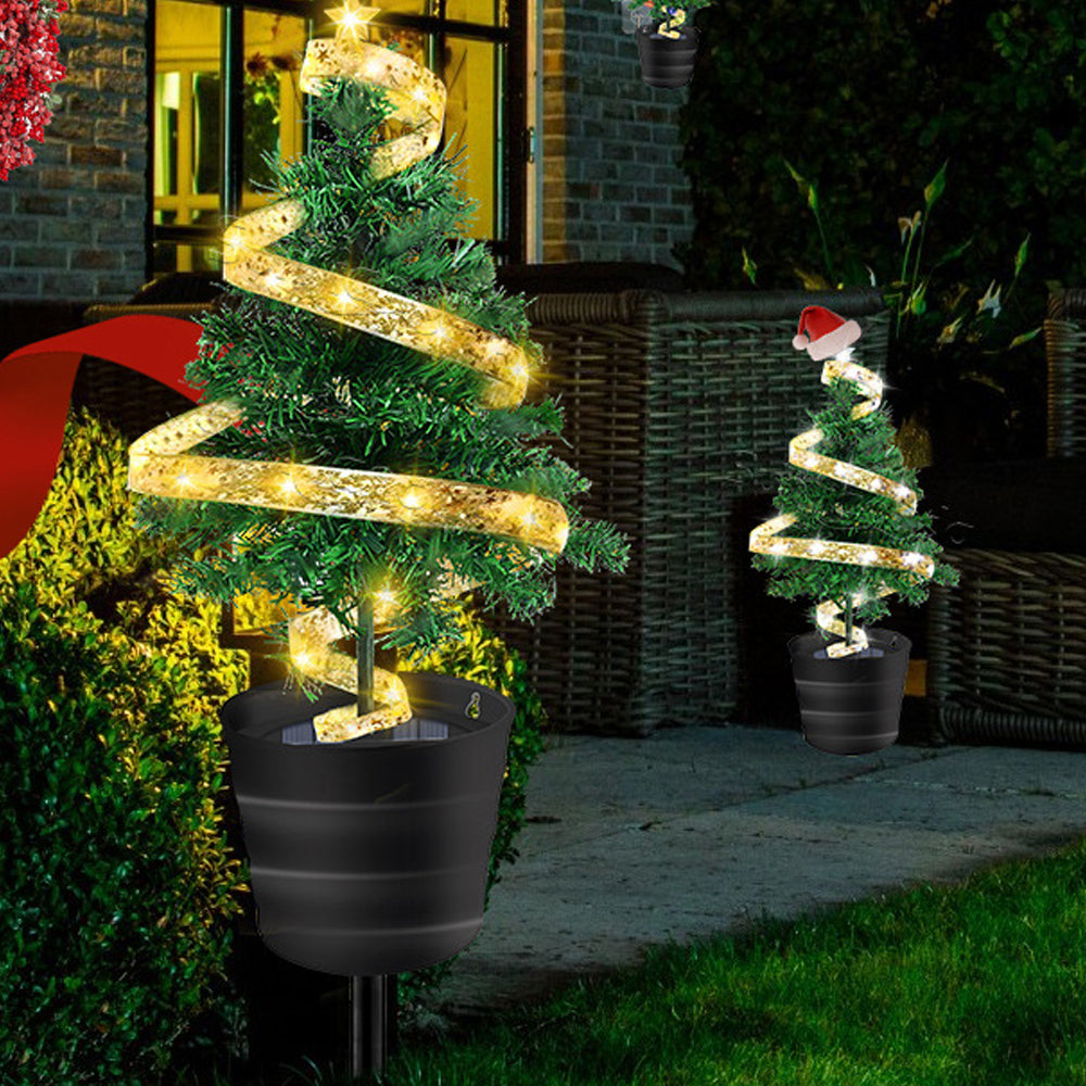Solar Christmas Tree Light Garden Stakes Lights Tabletop Christmas Decor Warm