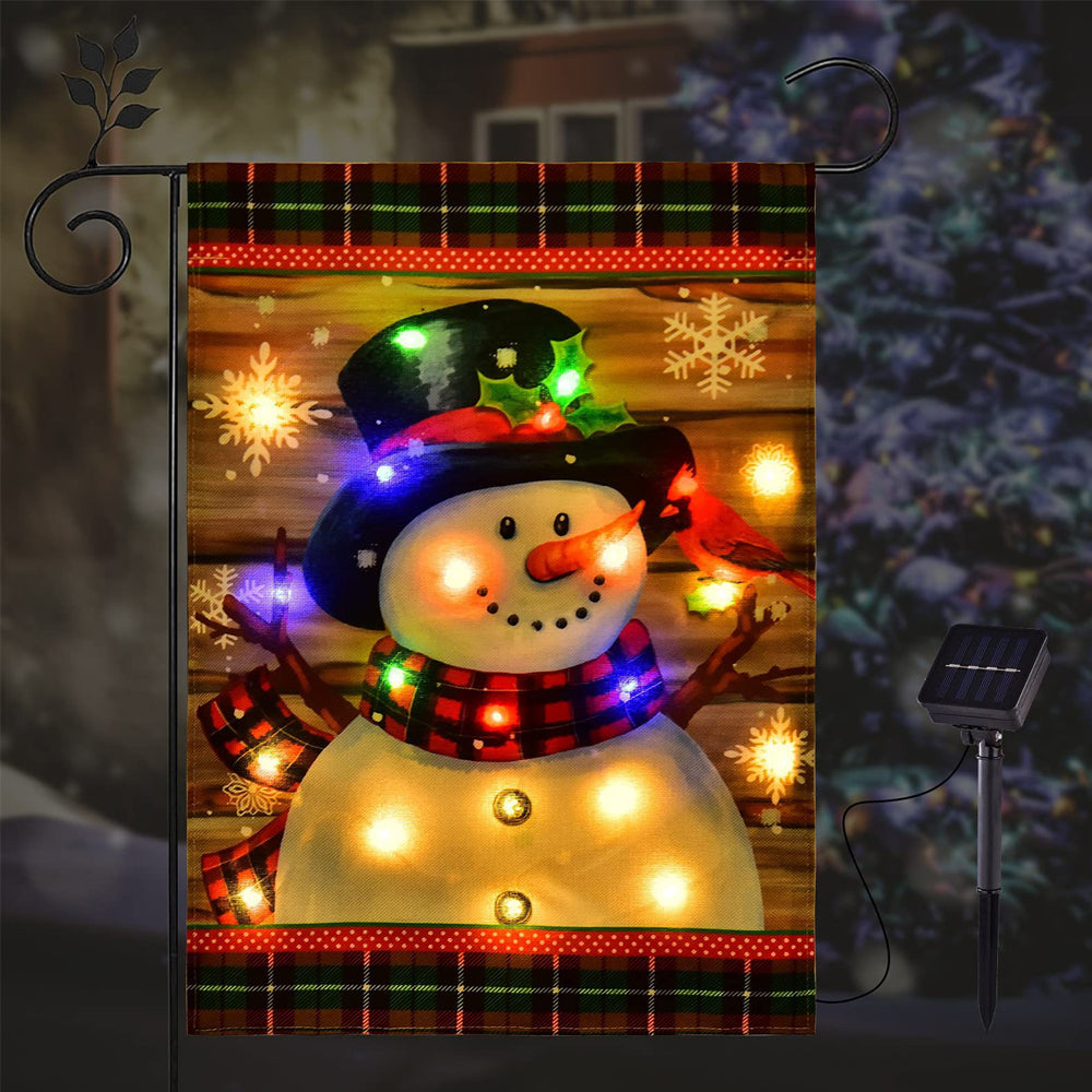 - The winter garden flag with solar lights features a 2-layer design, double-sided with pattern image viewable from both sides!