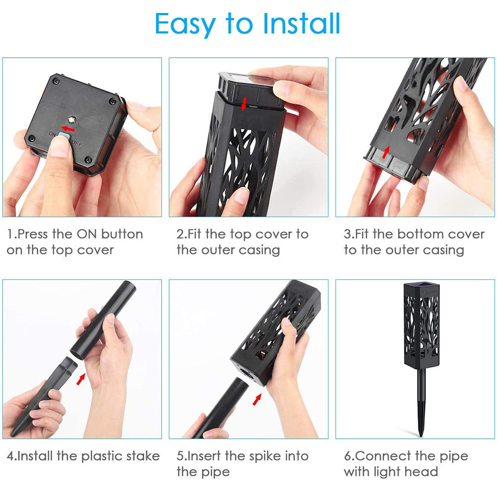 Solar Firework Light 6Pcs Hollow Carved Solar Light Patio Walkway Lamp Outdoor Garden Decor -White