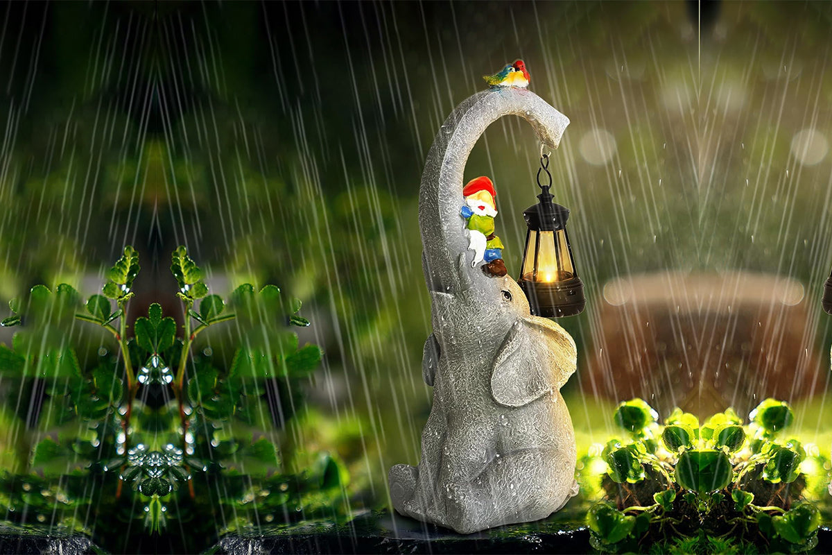 - This solar-powered elephant statue is built to withstand outdoor conditions.?