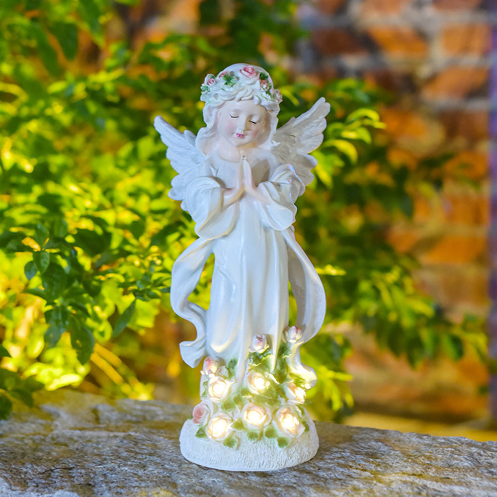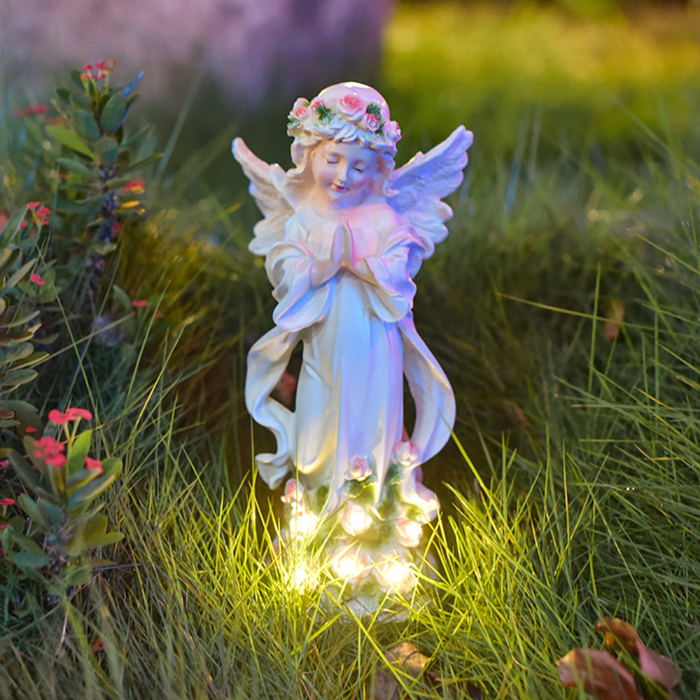 The solar powered angel statue comes with the unique and cute shape, adding more fun to your favorite garden.
