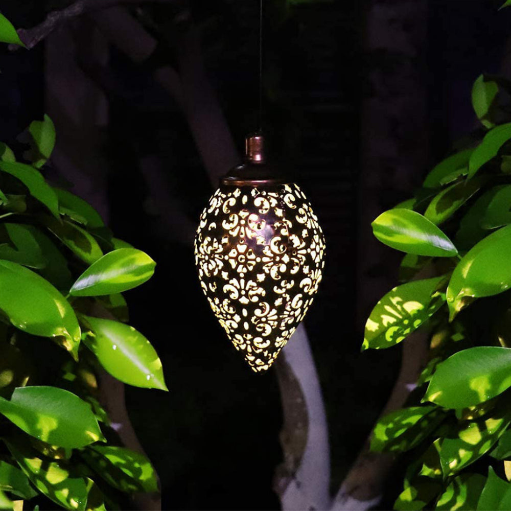 Designed with delicate hollow lampshade, the solar hanging lamp features in its vintage style and beautiful pattern light effect, which is a wonderful decoration for your garden.