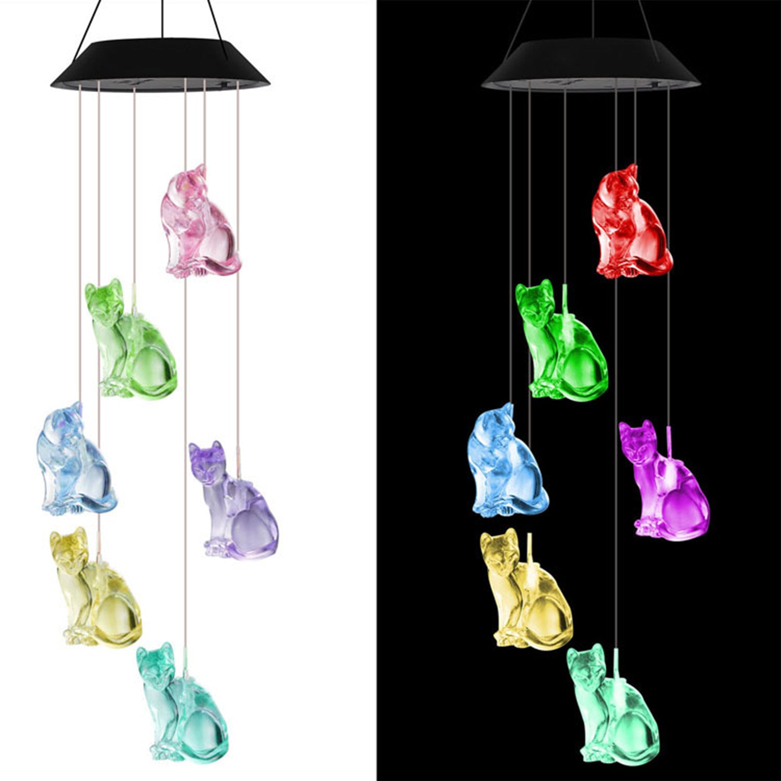 Solar Wind Chimes Color Changing Cat Wind Chimes Decoration Lights