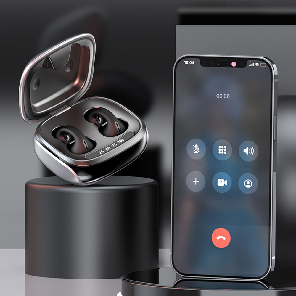 Sports Wireless Bluetooth Headphone Ear Clip Bone Conduction Headset Clip On Earbuds Black