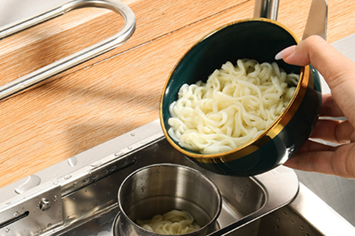 Made of stainless steel, it offers durability, resistance to rust and corrosion, and a sleek appearance that complements any kitchen decor.