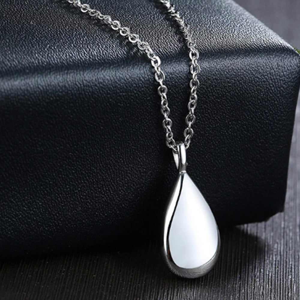 Stainless Steel Teardrop Cremation Pendant ââ‚?Keepsake Memorial Necklace Sliver