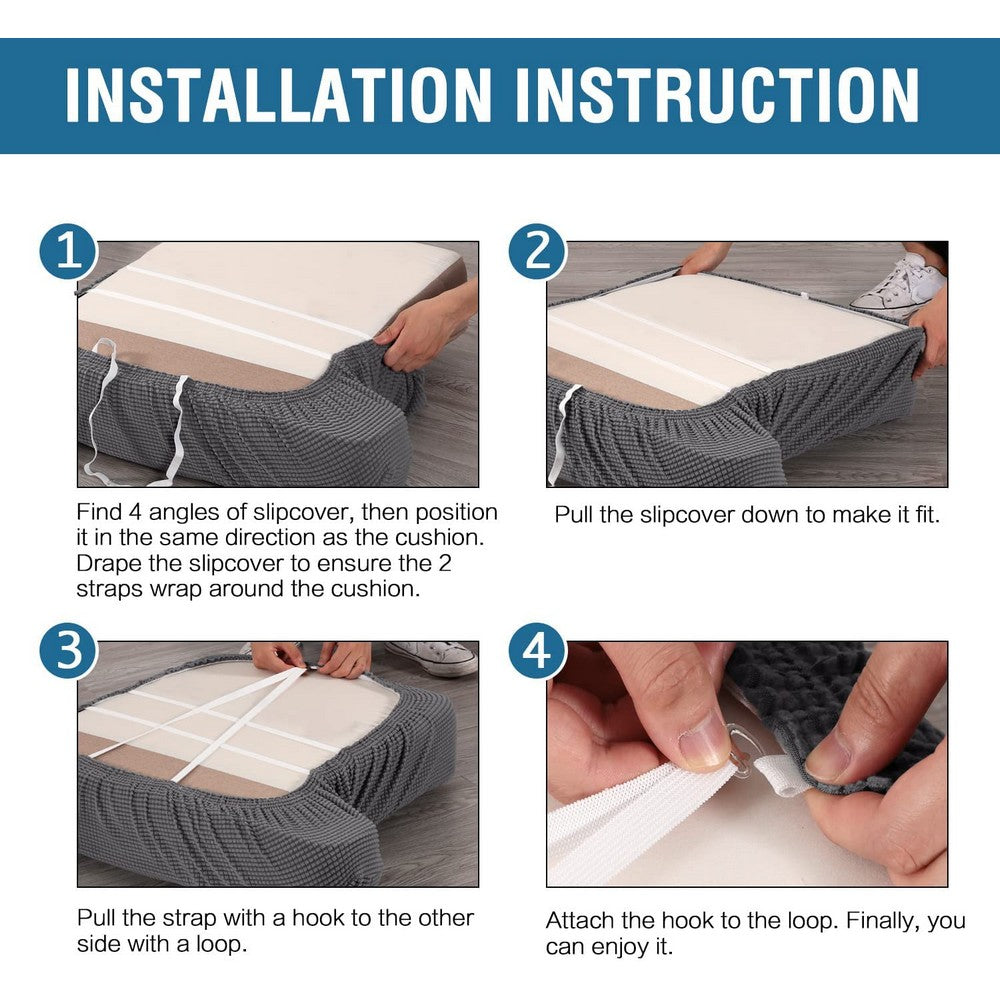 - Non-skid thick elastic bottom prevents sliding. And in order to better stay in place, the bottom of cover add three additional elastic straps. Our T cushion slipcovers could stay tight without wrinkling, shifting or slipping.