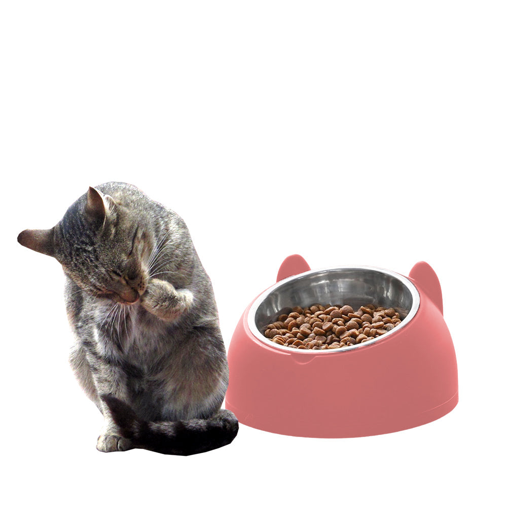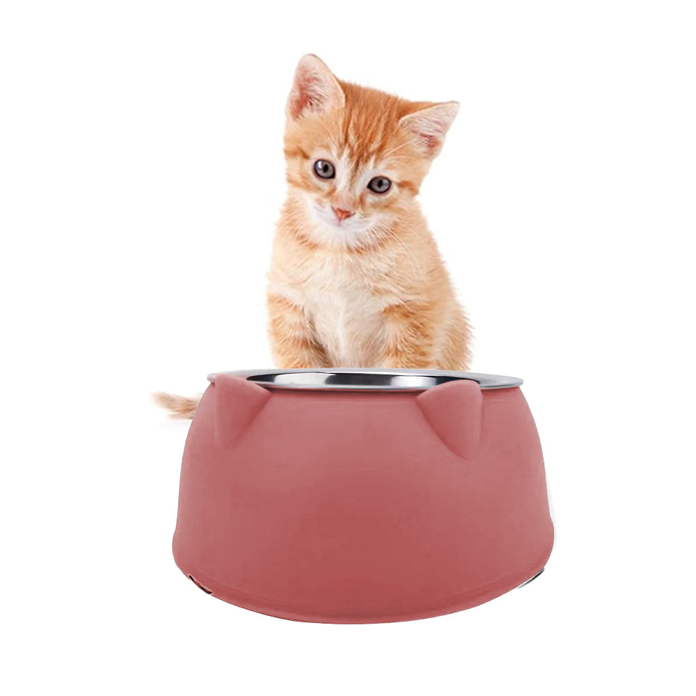 Tilted Dog Food Bowl Stainless Steel Cat Dog Feeder Pink