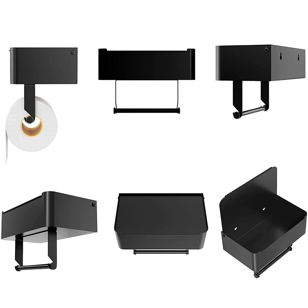 - Wall mount toilet tissue holder dispenses one roll on the rack and can hold the phone, wet wipes, tissues, or smaller items on the shelf.