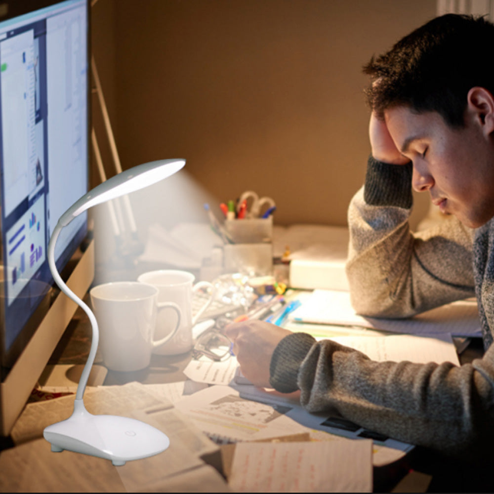 This LED touch table lamp features a flexible design and offers 3 levels of brightness, perfect for reading and desk use.