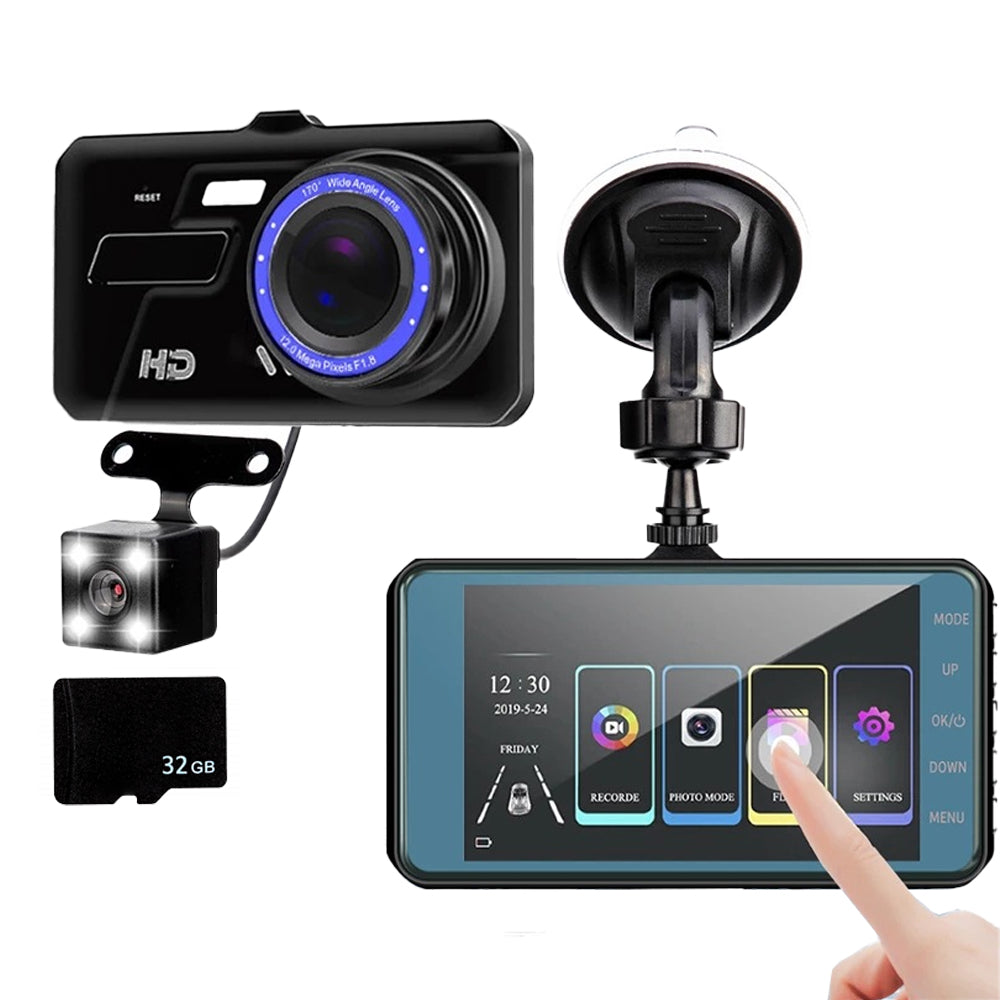 Touch Screen Dash Cam 2 Channel Car Camera Front and Rear Monitoring Loop Recording Camera