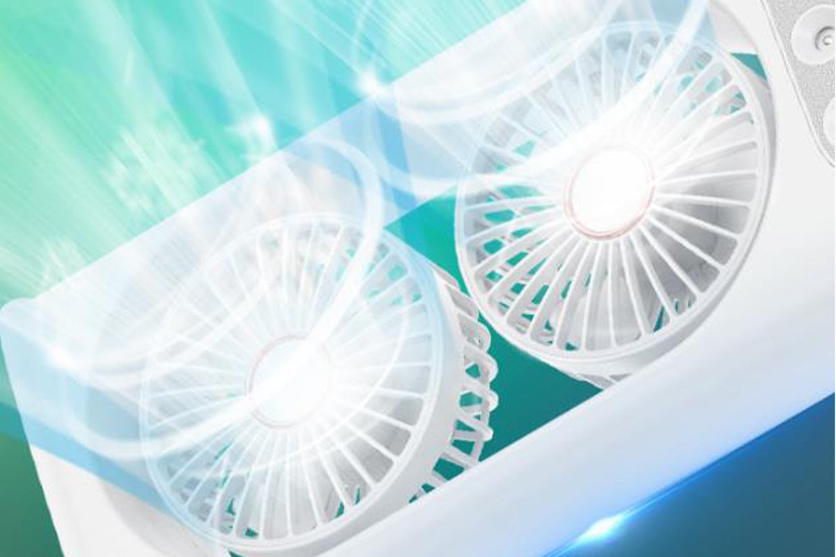 - Dual wind concentrating design with spiral blades high torque motor and steep angle blades combined with a directional airflow hood increases wind efficiency by up to 90 percent for faster air circulation and longer throw distance.