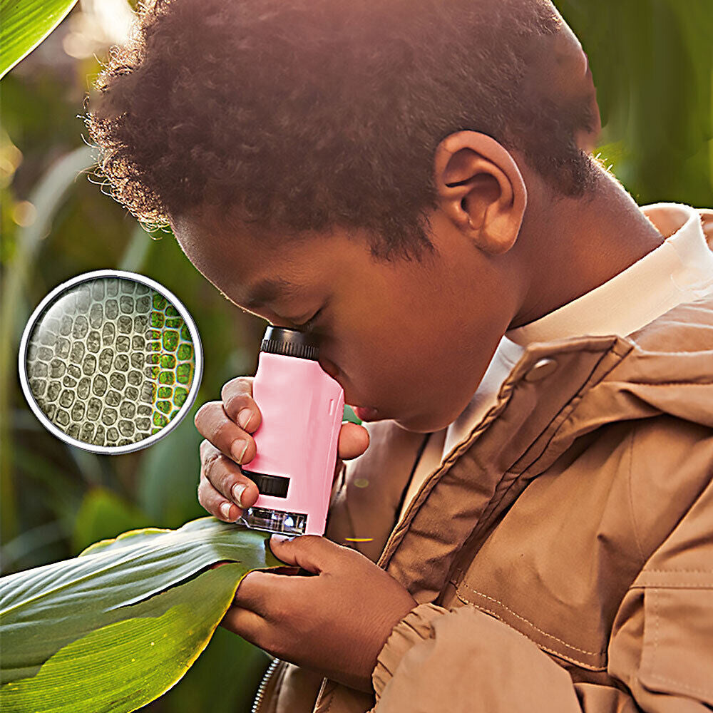 This kids pocket microscope 60X-120X handheld magnifying lens with led light.