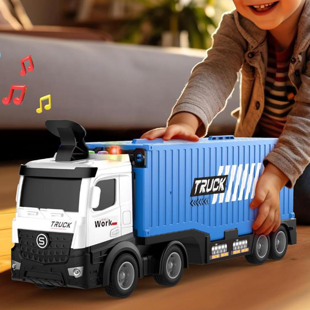 - Our truck toy for ejecting container rail cars has dual launcher tracks, one-touch ejection function, inertial driving, parking lot and storage space.