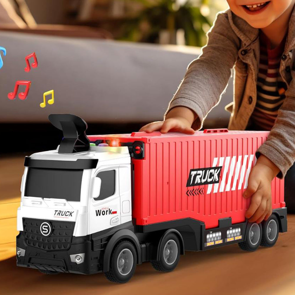 - Our truck toy for ejecting container rail cars has dual launcher tracks, one-touch ejection function, inertial driving, parking lot and storage space.
