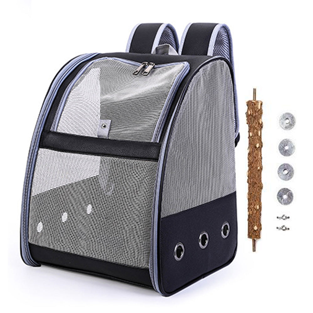 Travel Bird Carrier Clear Mesh Pet Backpack for Small Birds Kitty Puppy Black