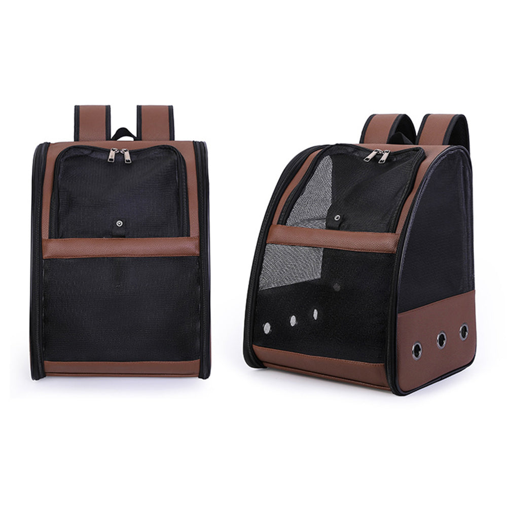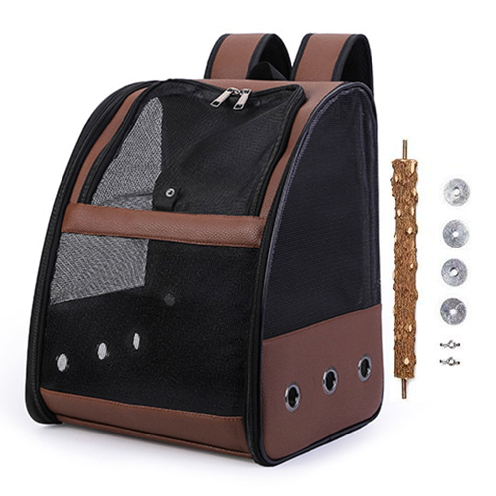Travel Bird Carrier Clear Mesh Pet Backpack for Small Birds Kitty Puppy Brown