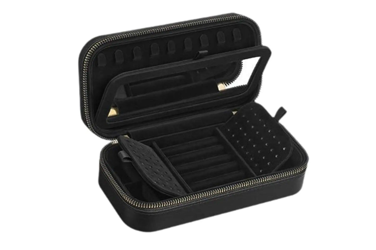 Travel Jewelry Case Jewelry Box Organizer With Mirror Display Case Storage-Black