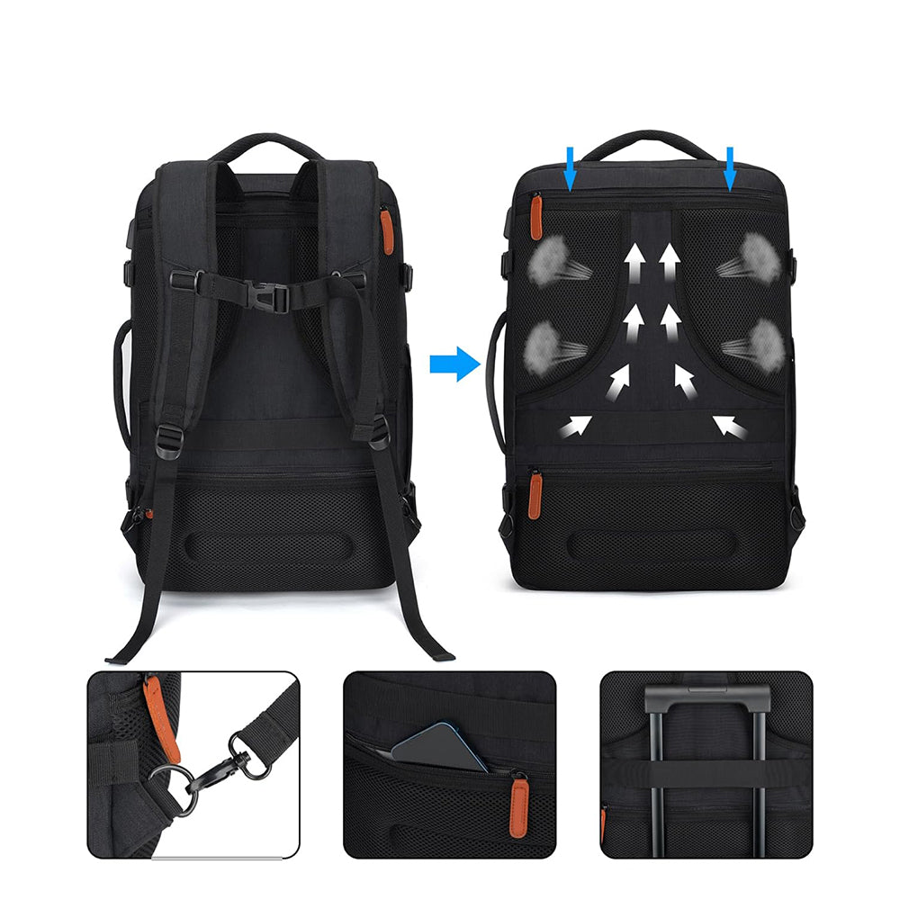 - The design of this travel backpack meets the airline’s requirements for carry-on, it can be put in the overhead luggage rack and the storage space under the seat in flight.